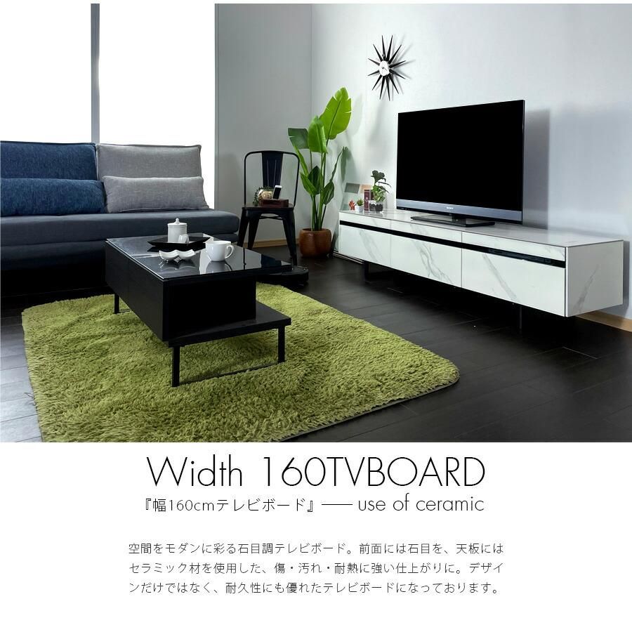 テレビボード 幅160 セラミック 木製 脚付 ロータイプ 北欧 おしゃれ 完成品 高さ42 テレビ台 TV台 TVボード 石目調 ホワイト ブラック グレー 白 黒 リビング収納 アウトレット価格並