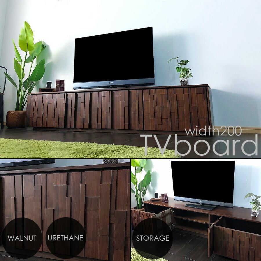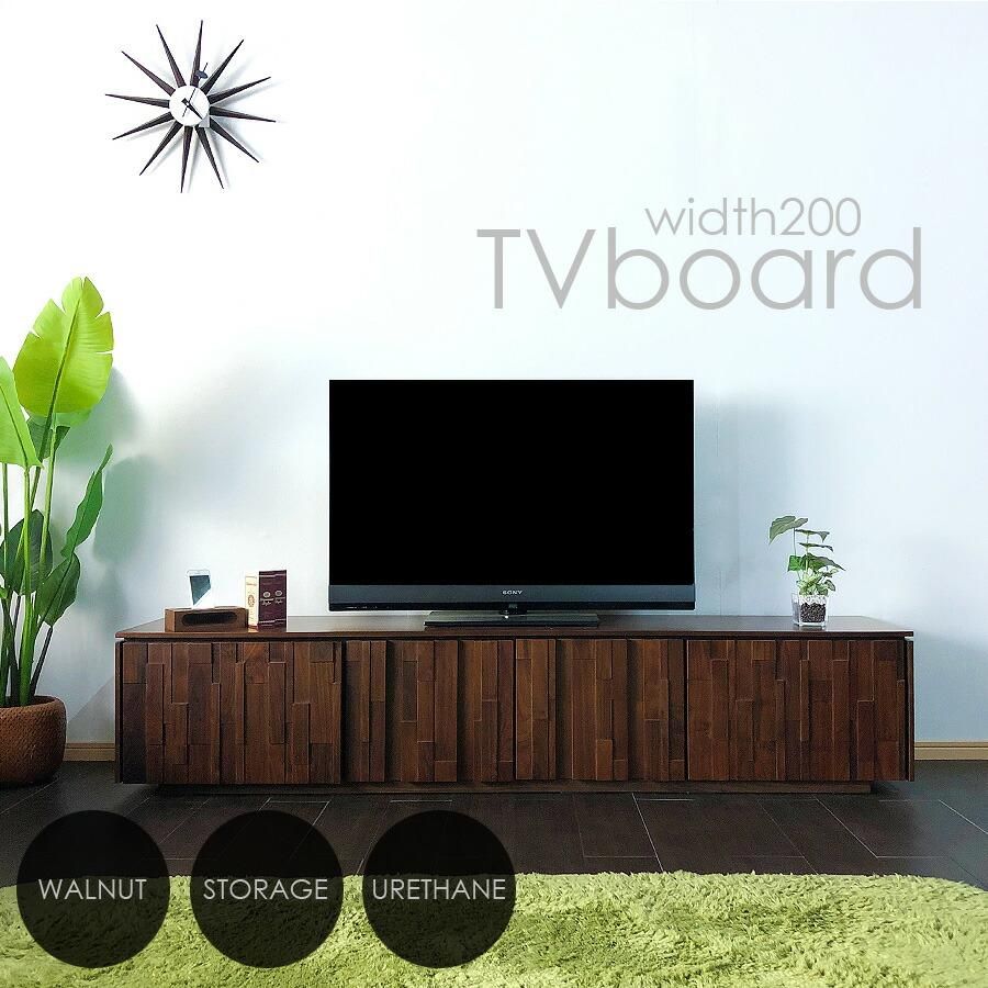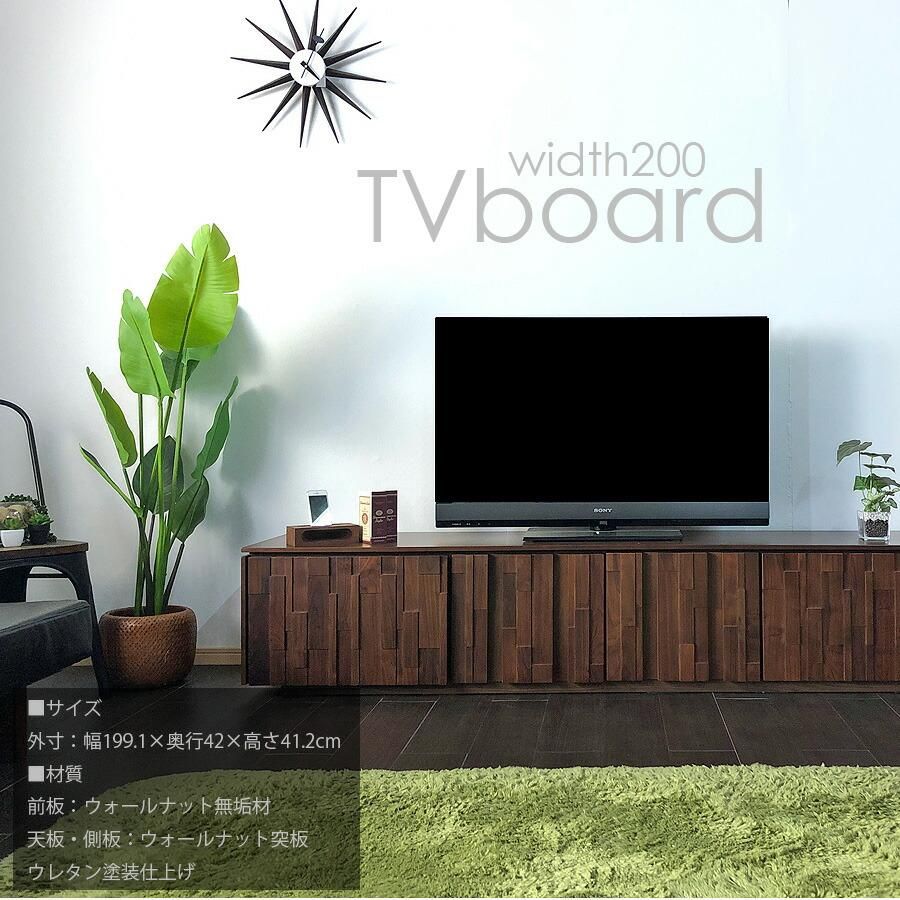 テレビ台 テレビボード 幅199 完成品 木製 おしゃれ 北欧 モダン ウォールナット ブラウン ローボード リビングボード 無垢 天然木 ウレタン塗装 フルオープン高級 収納 アウトレット価格並
