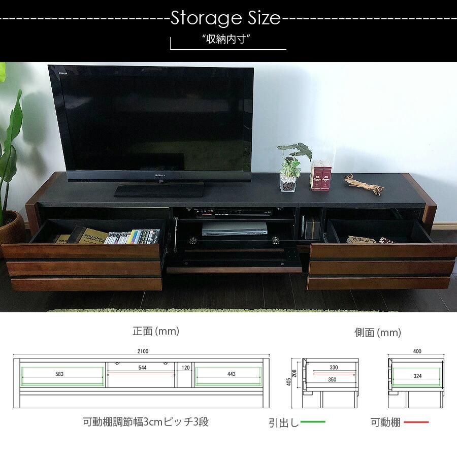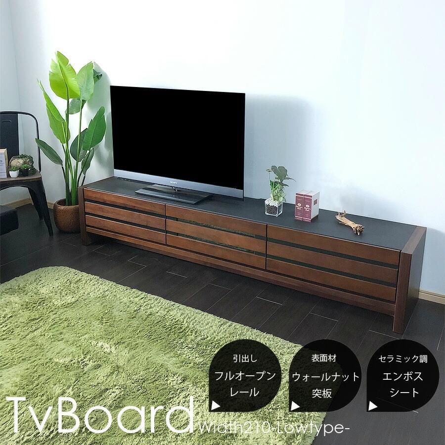 テレビ台 テレビボード 幅210 完成品 木製 おしゃれ 北欧 モダン ウォールナット ブラウン ローボード リビングボード 無垢 収納 突板 アウトレット価格並