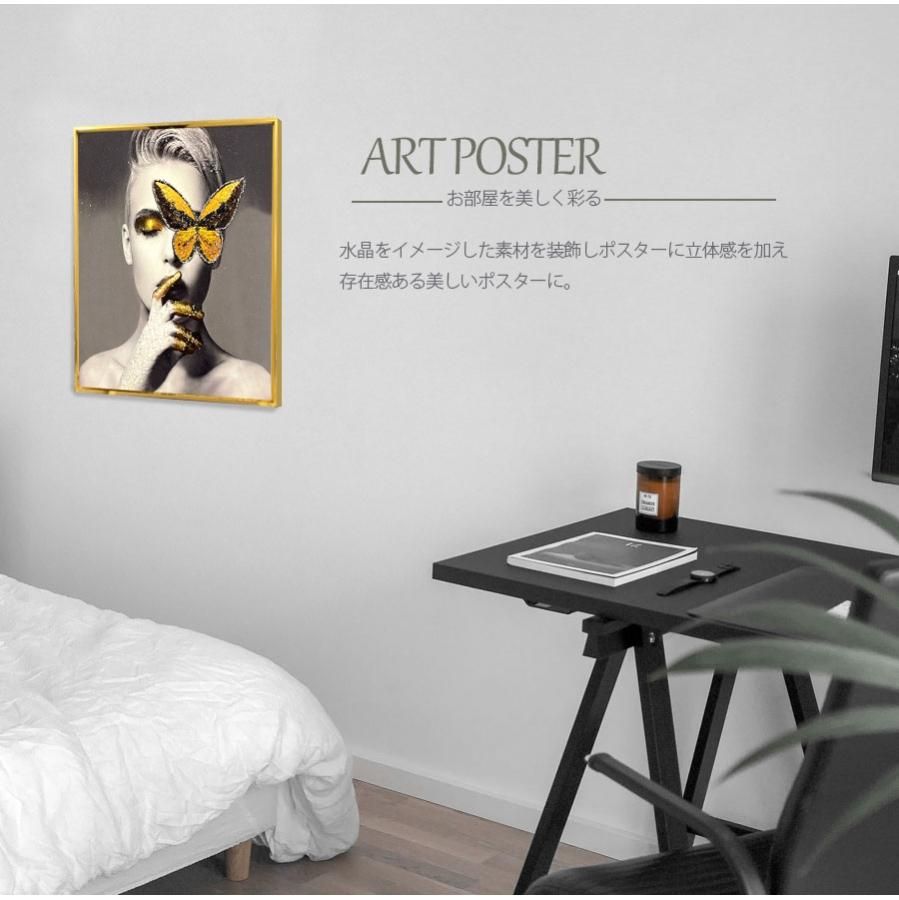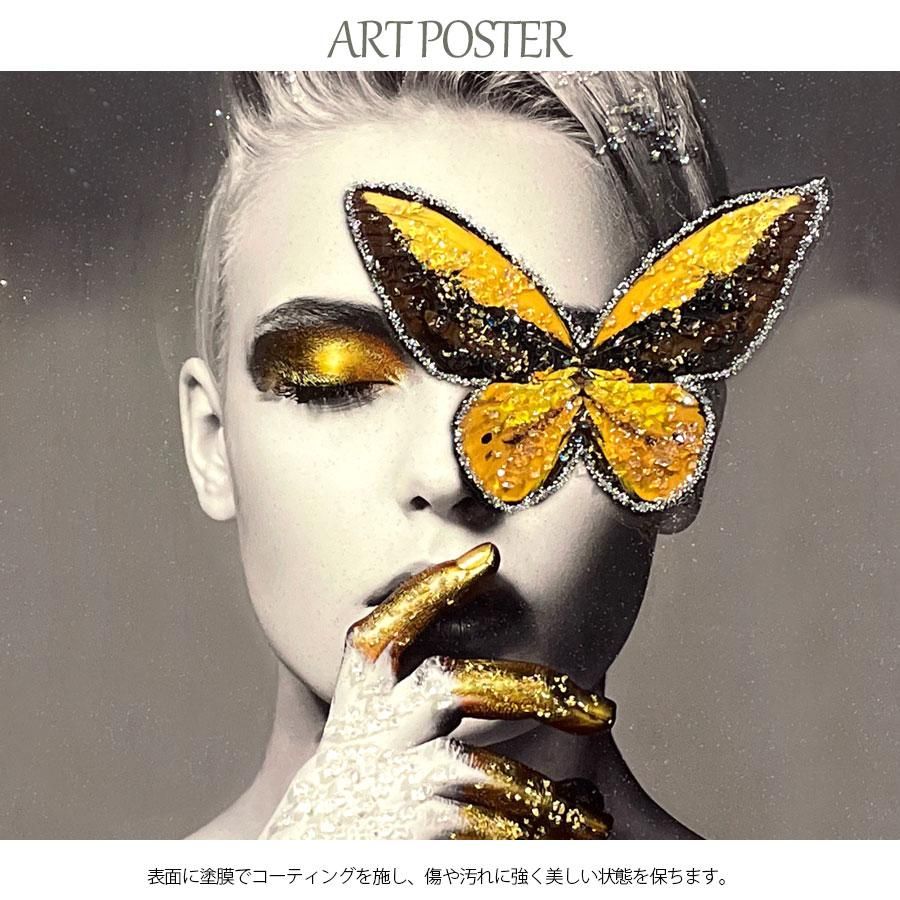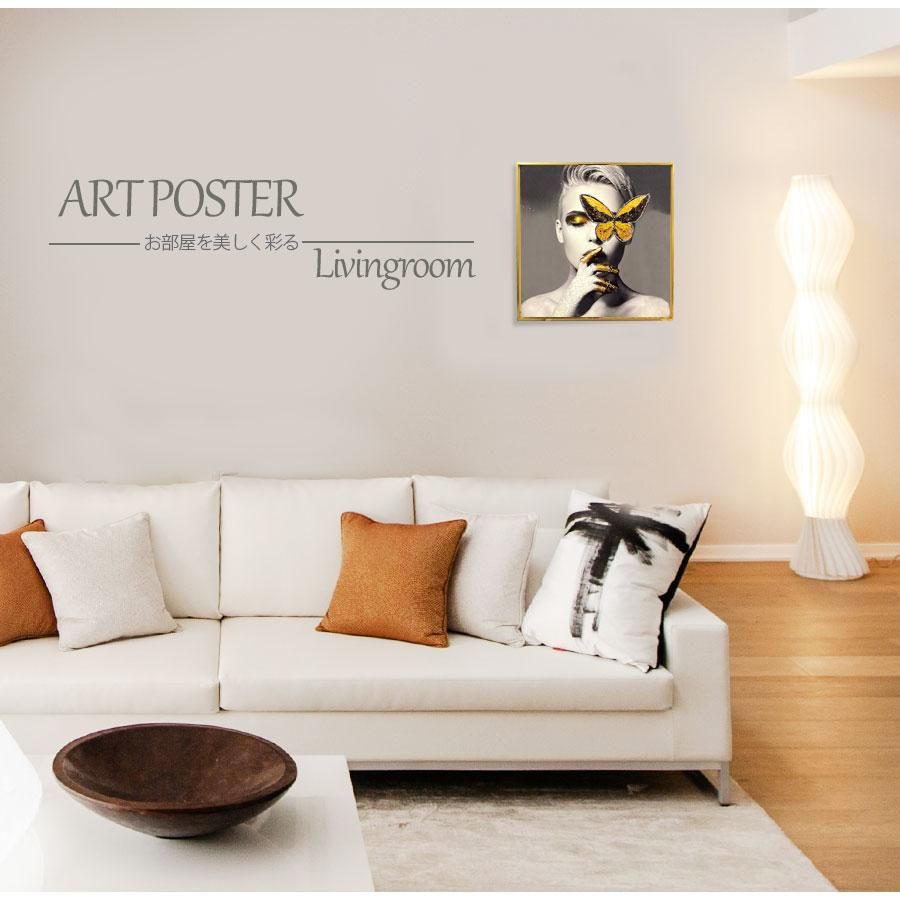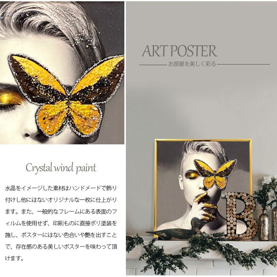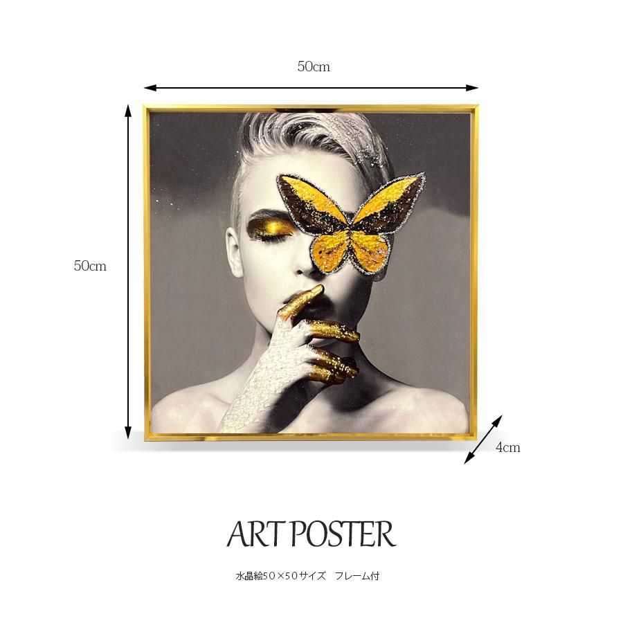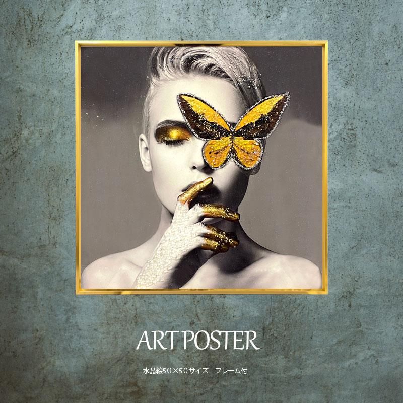 アートポスター アートパネル 水晶絵 ポスター フレーム付き 50×50 正方形 おしゃれ モダン スタイリッシュ リビング 寝室 玄関 壁掛け 高級 大きめ 立体 女性 蝶 アウトレット価格並