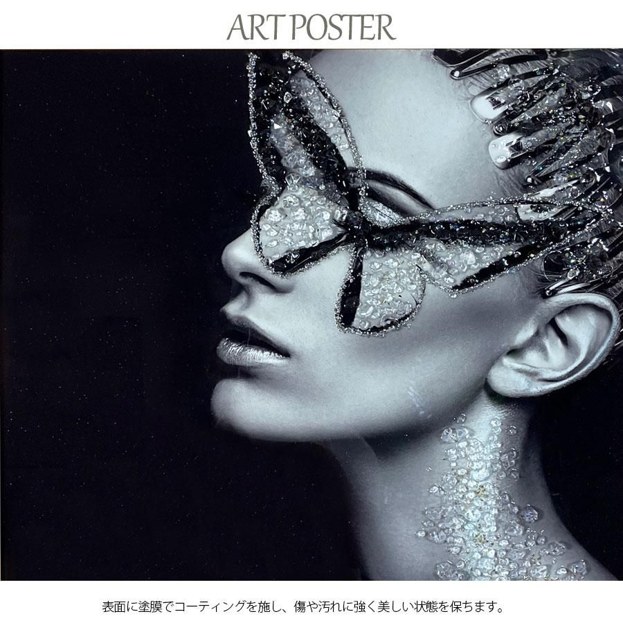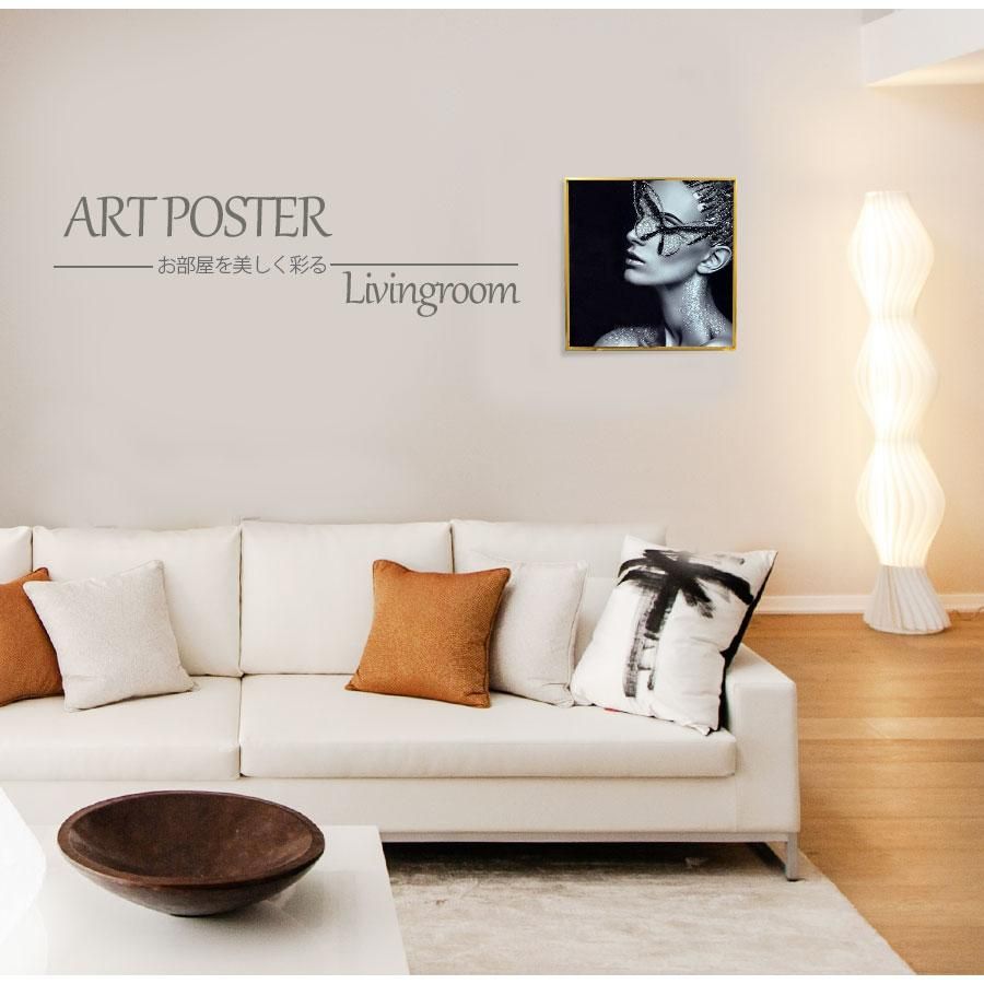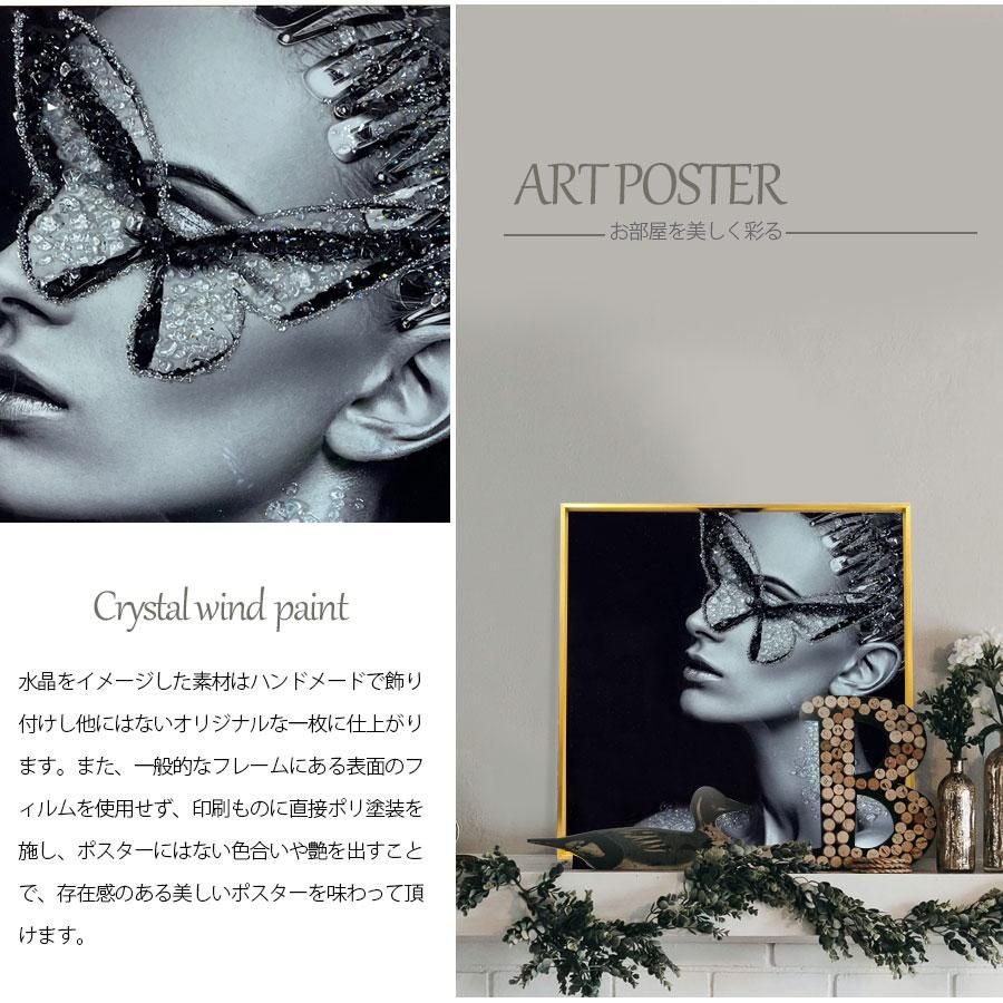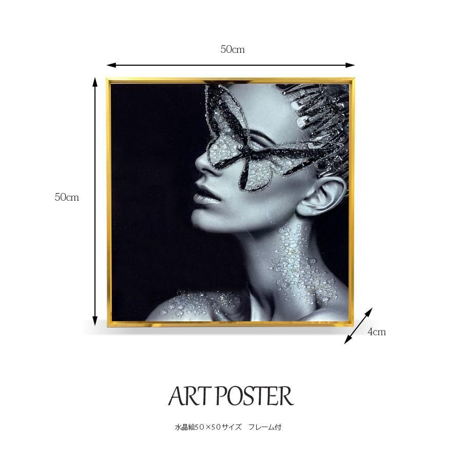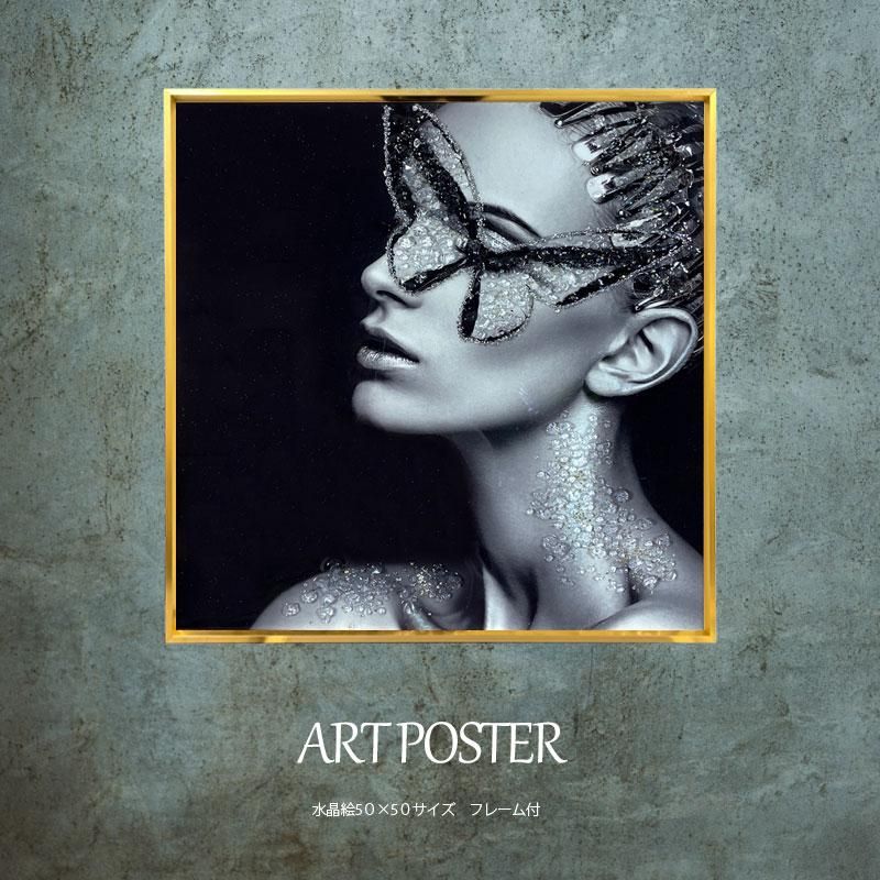 アートポスター アートパネル 水晶絵 ポスター フレーム付き 50×50 正方形 おしゃれ モダン スタイリッシュ リビング 寝室 玄関 壁掛け 高級 大きめ 立体 女性 蝶 アウトレット価格並