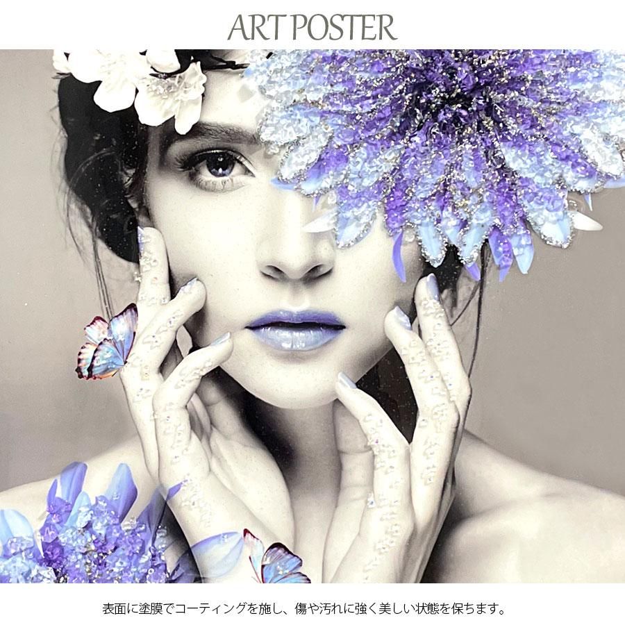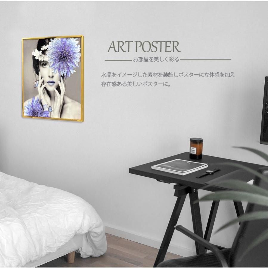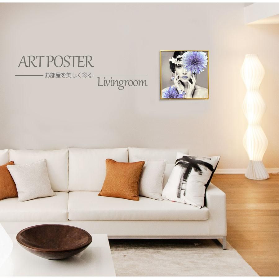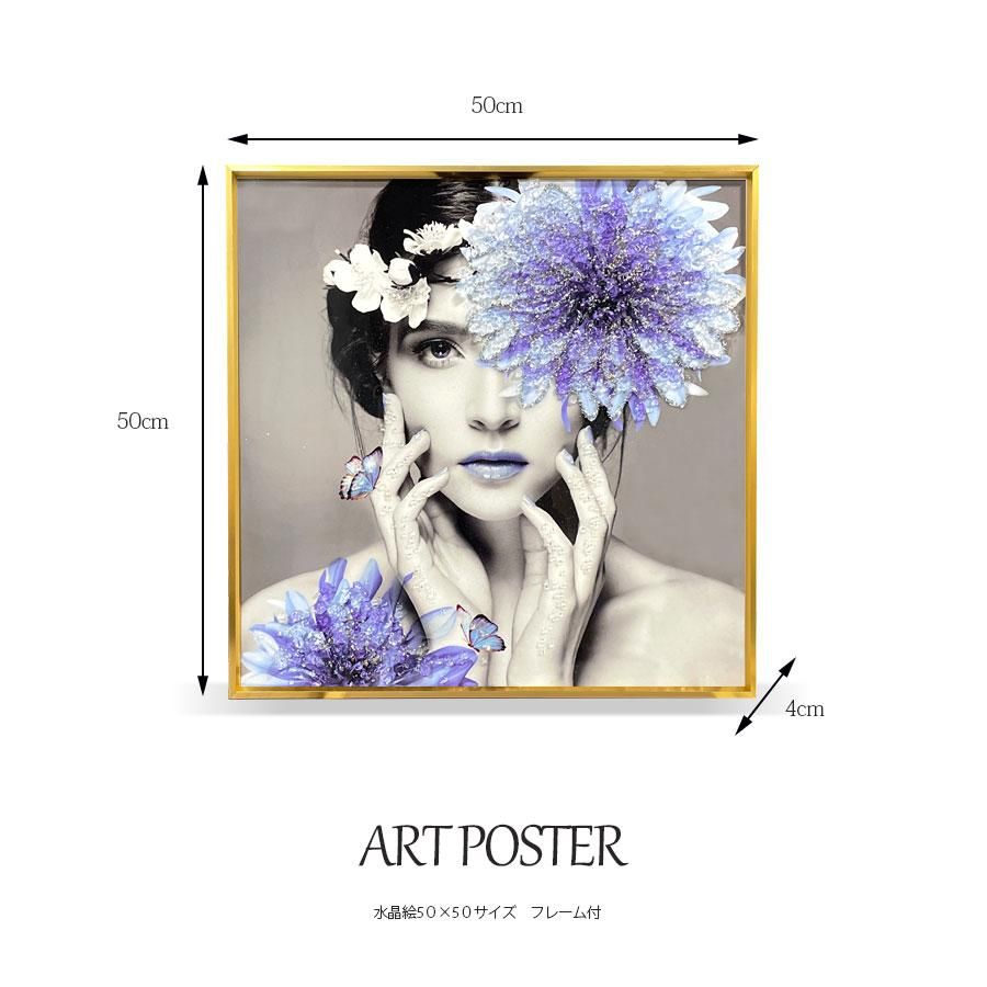 アートポスター アートパネル 水晶絵 ポスター フレーム付き 50×50 正方形 おしゃれ モダン スタイリッシュ リビング 寝室 玄関 壁掛け 高級 大きめ 立体 女性 花 アウトレット価格並