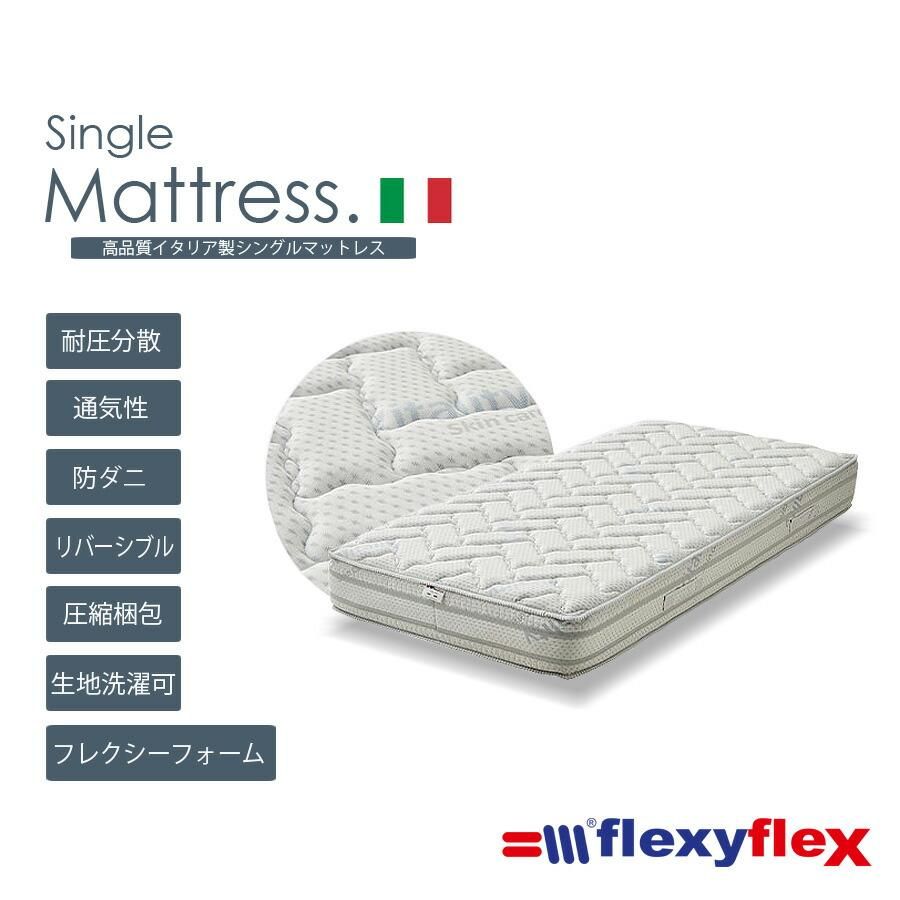 マットレス シングル 幅97 ノンコイル 体圧分散 flexyflex Sサイズ イタリア製 高級マットレス 圧縮マット 防ダニ 洗濯 通気性 快眠 厚み23 人気 寝具 リバーシブル 気持ち良い