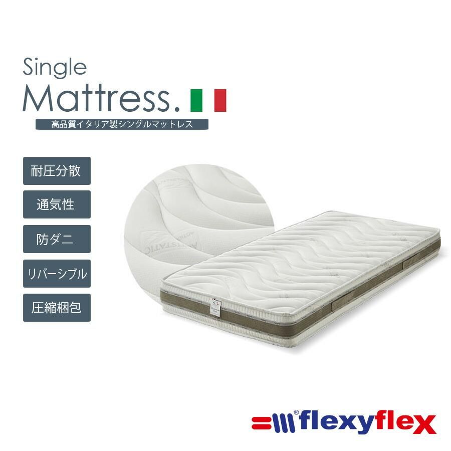 マットレス シングル 幅97 ノンコイル 体圧分散 flexyflex Sサイズ イタリア製 高級マットレス 圧縮マット 防ダニ 通気性 快眠 厚み23 人気 寝具 リバーシブル 気持ち良い