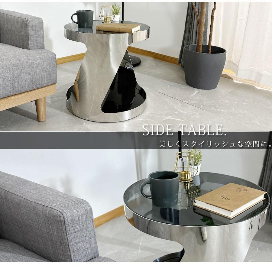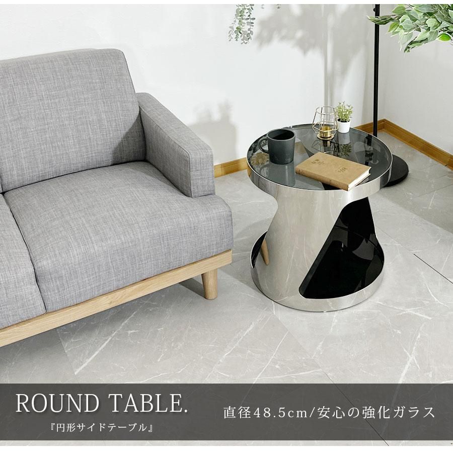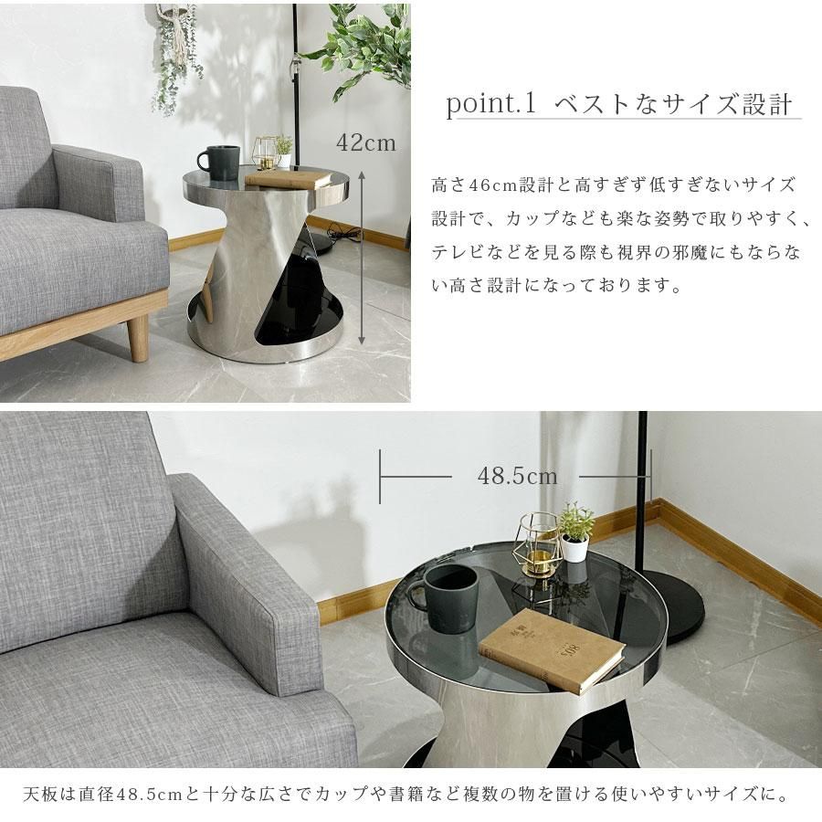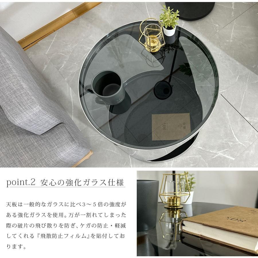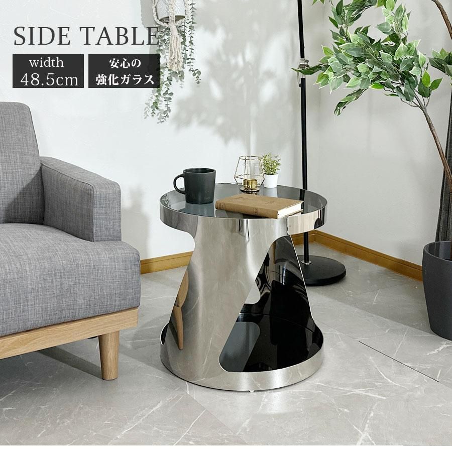 サイドテーブル ガラス天板 高級 おしゃれ モダン 幅48.5cm ソファ横 シンプル ガラステーブル 強化ガラス 飛散防止フィルム ブラック 大川家具matsumoto アウトレット価格並
