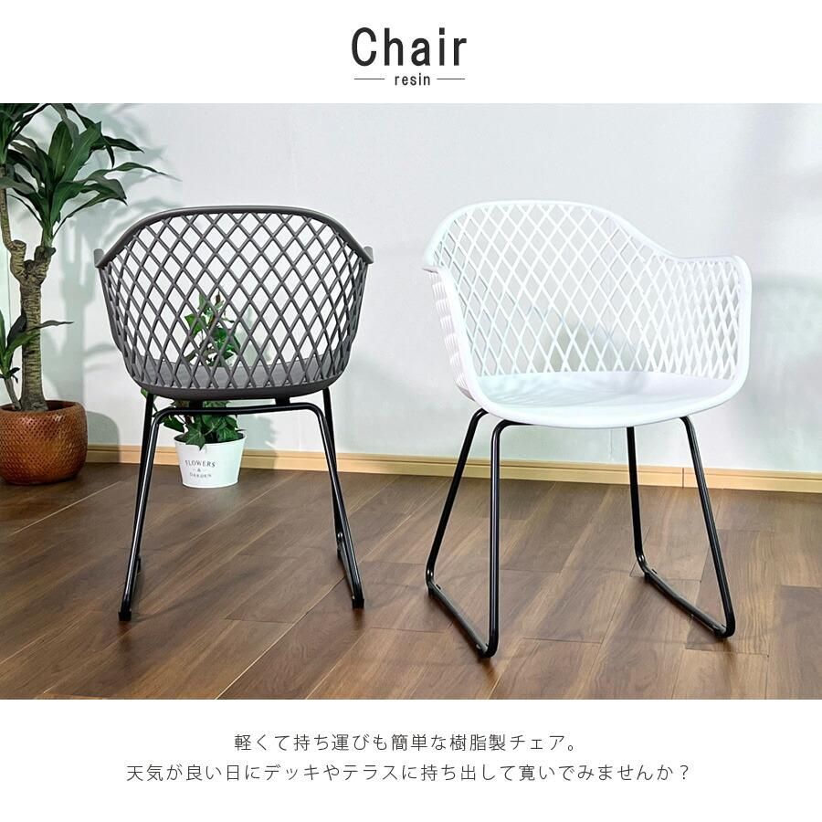 チェア ダイニングチェア 樹脂製チェア おしゃれ スタイリッシュ 座面高43cm 軽い ダイニング デッキ テラス スチール脚 ホワイト グレー アウトレット価格並