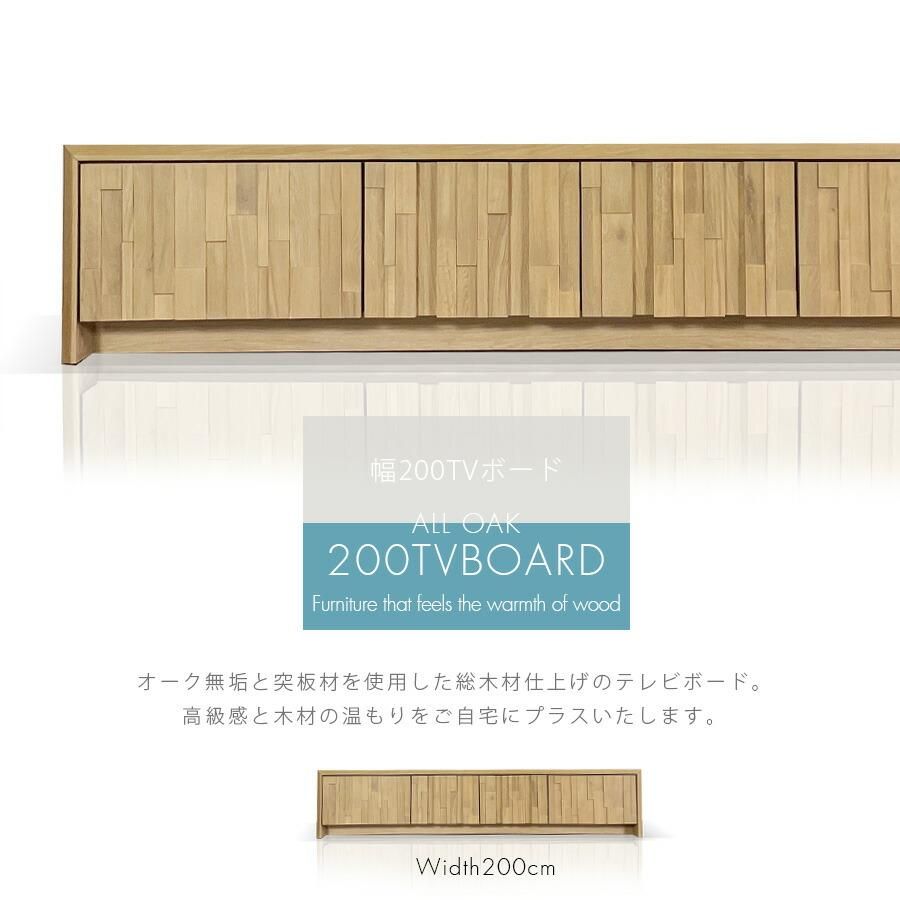 テレビ台 完成品 ローボード 幅200 オーク無垢 おしゃれ 北欧 モダン ナチュラル 木製 テレビボード TV台 TVボード 65インチ リビング収納 55インチ 収納家具 高級 アウトレット価格波