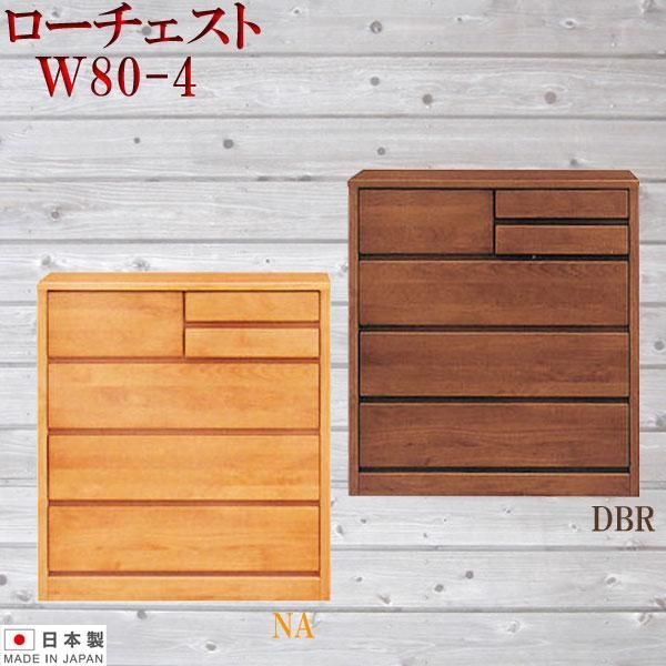 チェスト タンス 箪笥 ローチェスト 80幅 幅80cm 4段 整理たんす 衣類収納 引き出し 箱組 日本製 完成品 北欧 木製 素材 アルダー ブラウン ナチュラル 大川家具