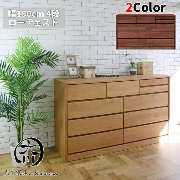 チェスト タンス 箪笥 ローチェスト 150幅 幅150cm 4段 整理たんす 衣類収納 引き出し 箱組 日本製 完成品 北欧 木製 アルダー ブラウン ナチュラル 大川家具
