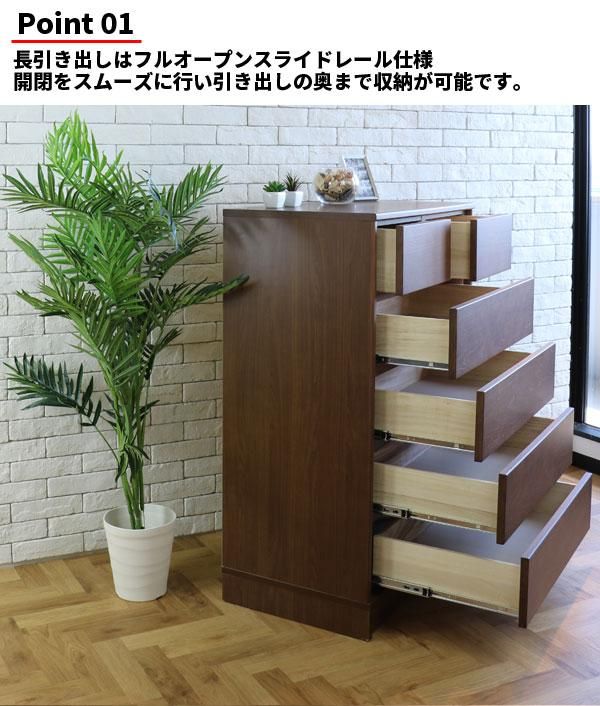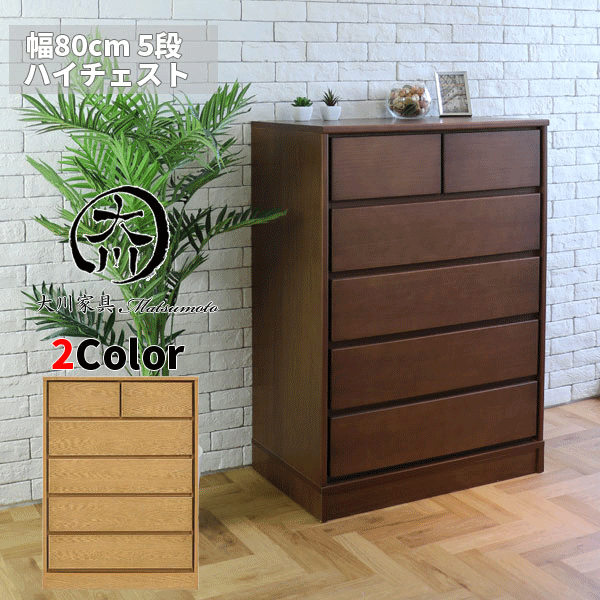 チェスト タンス 箪笥 ハイチェスト 80幅 幅80cm 5段 整理たんす 衣類収納 箱組 日本製 完成品 北欧 木製 ホワイトオーク突板 ブラウン ナチュラル 大川家具