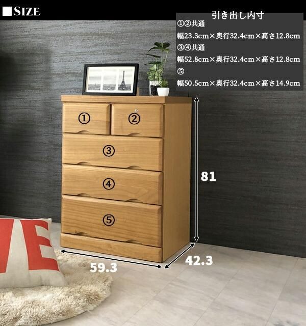 チェスト タンス 箪笥 ローチェスト 60幅 幅60cm 4段 整理たんす 衣類収納 カギ付 スライドレール 日本製 完成品 北欧 木製 桐 ナチュラル ブラウン 大川家具