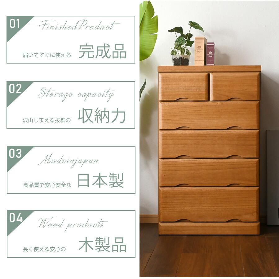 チェスト 5段 桐タンス 60cm 箪笥 ローチェスト 幅60cm 整理たんす 衣類収納 国産 日本製 完成品 北欧 木製 ライトブラウン 桐 ウレタン樹脂塗装 大川家具