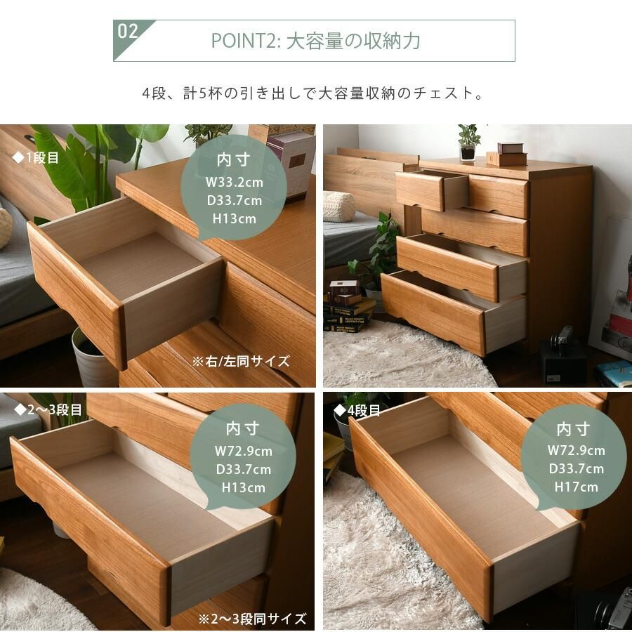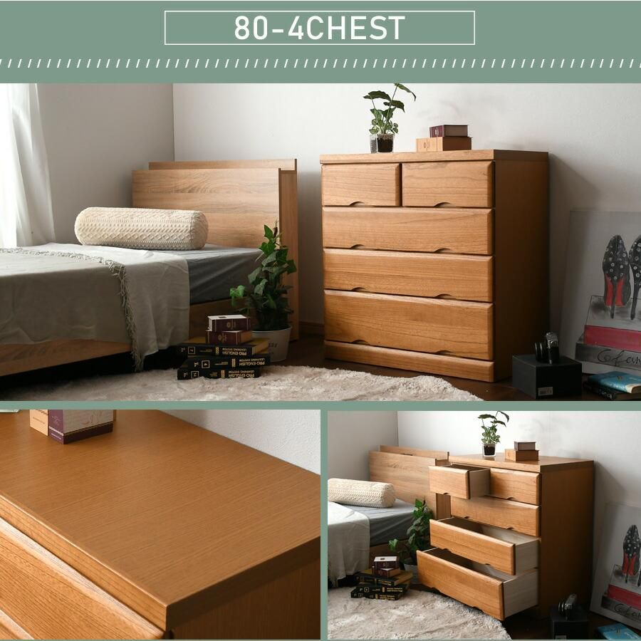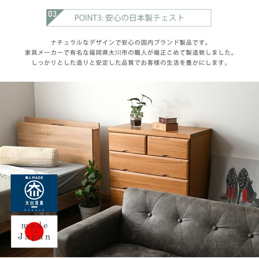 チェスト タンス 箪笥 80幅 幅80cm 4段 整理たんす 衣類収納 収納力 引き出し 日本製 完成品 北欧 木製 カラー等 ライトブラウン 桐 ウレタン樹脂塗装 大川家具