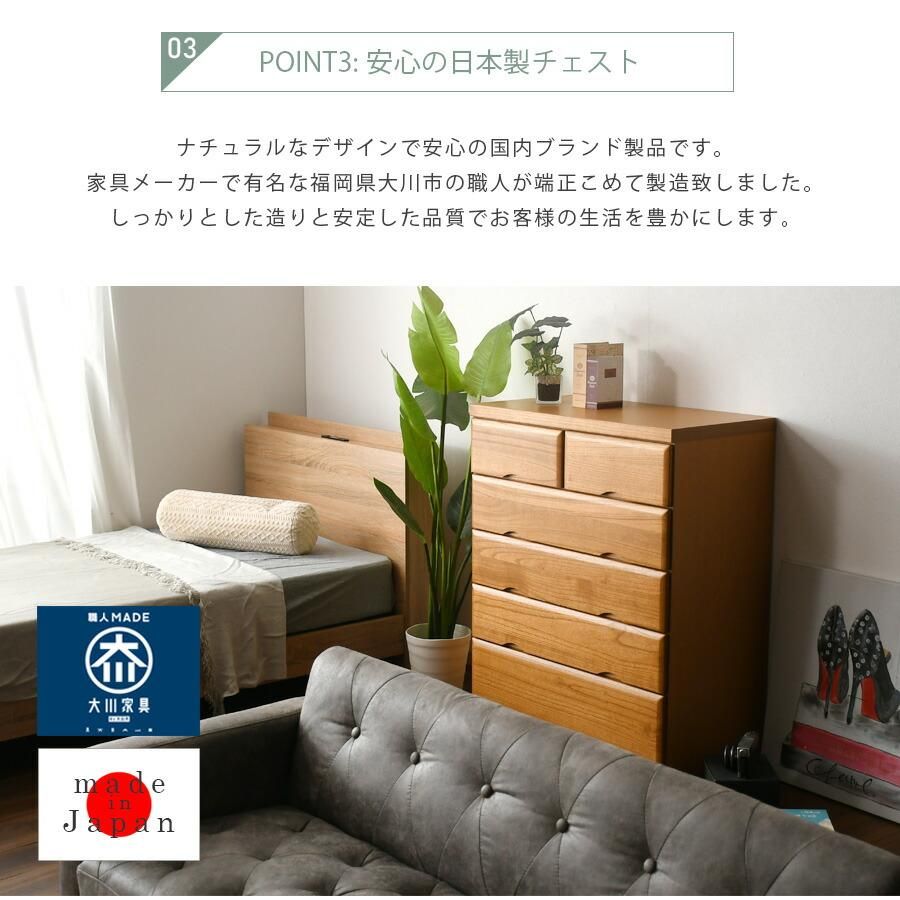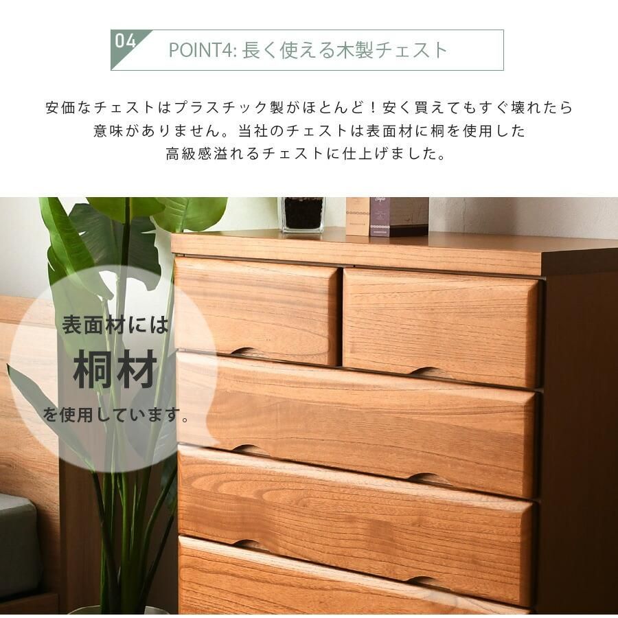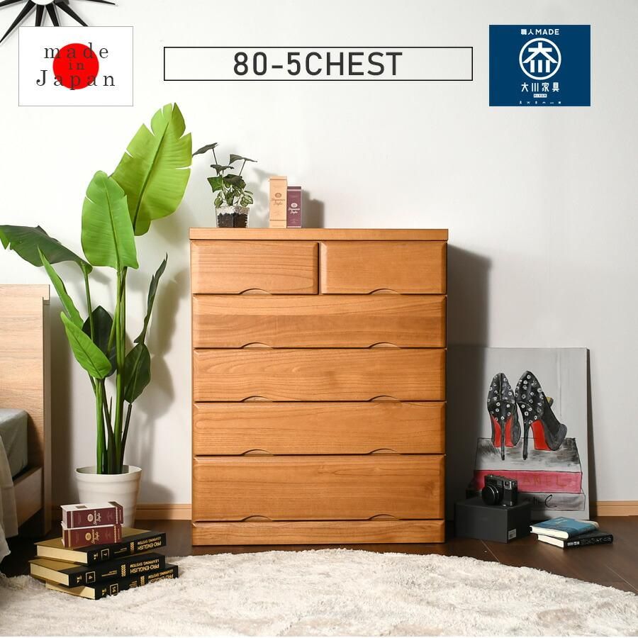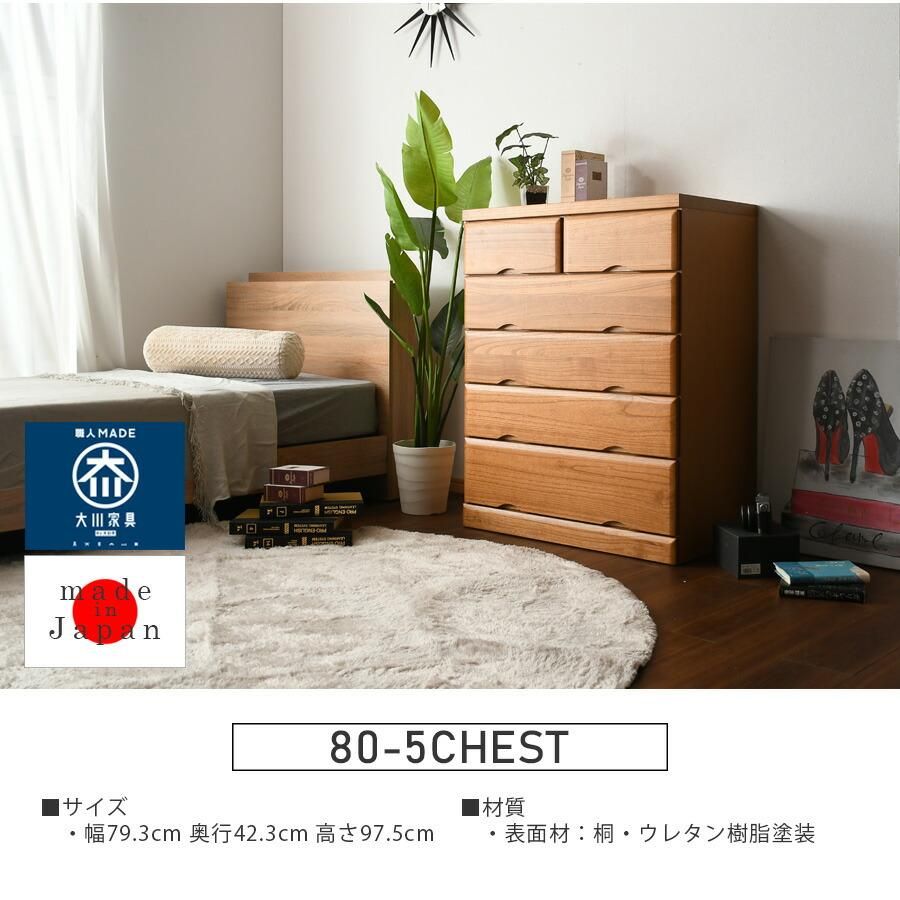 チェスト 5段 桐タンス 80cm 箪笥 幅80cm 整理たんす 衣類収納 国産 日本製 完成品 北欧 木製 ライトブラウン 桐 ウレタン樹脂塗装 大川家具