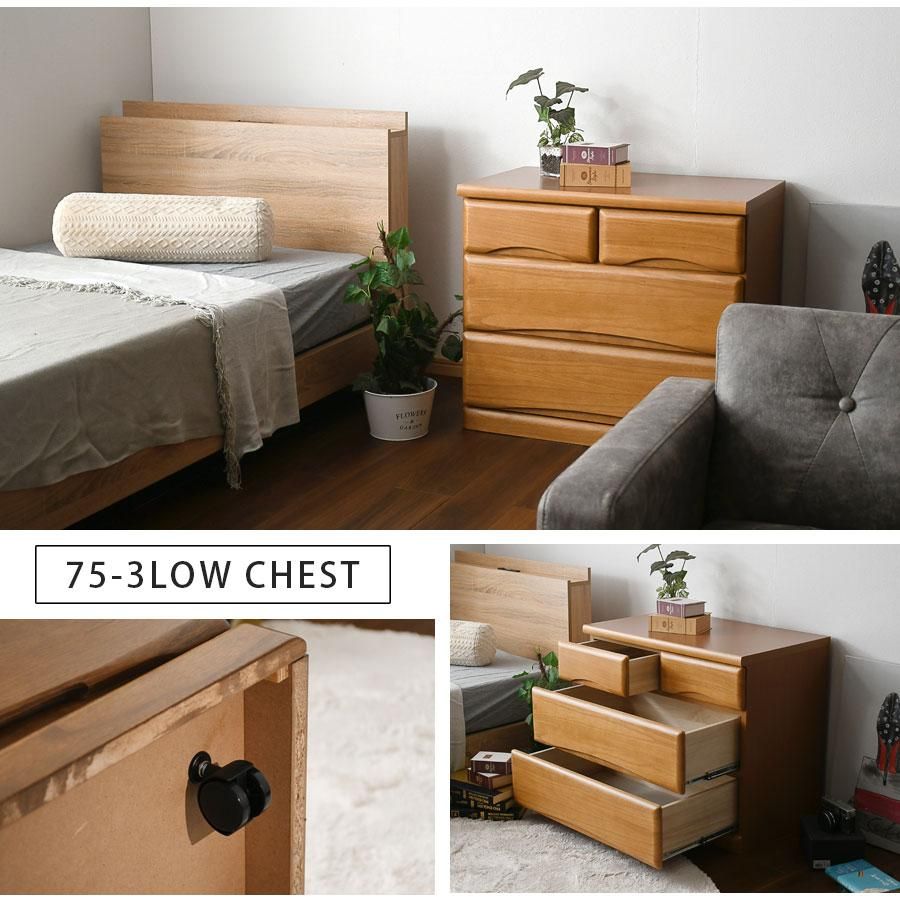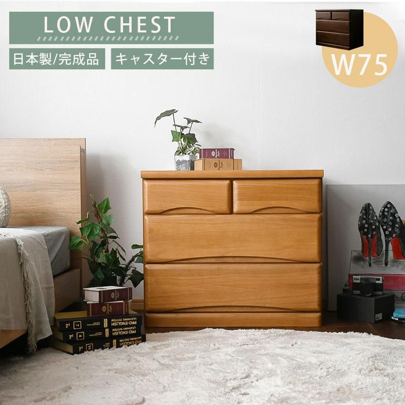 チェスト タンス 箪笥 ローチェスト 75幅 幅75cm 3段 整理たんす 衣類収納 収納力 引き出し 箱組 日本製 完成品 北欧 木製 素材 桐 ミドル ダーク 大川家具