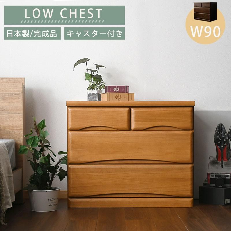 チェスト タンス 箪笥 ローチェスト 90幅 幅90cm 3段 整理たんす 衣類収納 収納力 引き出し 箱組 日本製 完成品 北欧 木製 素材 桐 ミドル ダーク 大川家具