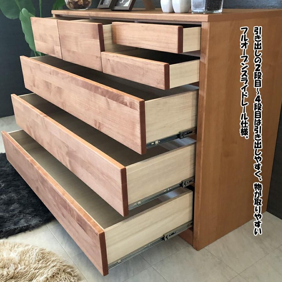 表面材:アルダー(自然塗装) 引出箱組 長引出しフルオープンレール付 天板側面:デルナチュレ |