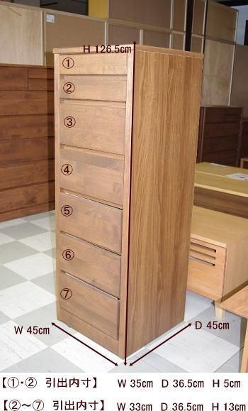 チェスト タンス ハイチェスト 多段チェスト 45幅 幅45 7段 スリム アルダー材 自然塗装 完成品 日本製 整理たんす すきま収納 スリムチェスト すき間収納