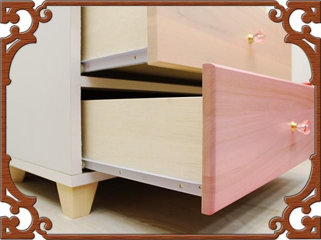 引出しのカラーもナチュラル、うすピンク、濃いピンクの3色を使用。