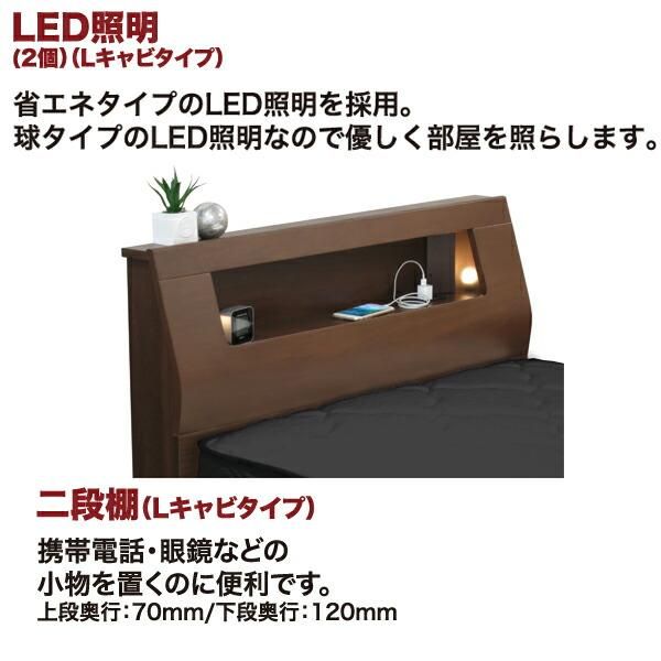 ※マットレス別売り Lキャビタイプ(引き出し無し) 棚付き スライドカバー付き1口コンセント付き(左右1箇所ずつ) LED照明付き(2個)