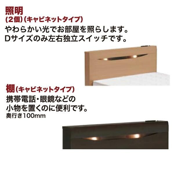 ※マットレス別売り 底板:布張り キャビネットタイプ(引き出し付き) 棚付き 照明付き スライドカバー付き2口コンセント付き(左右独立スイッチ)
