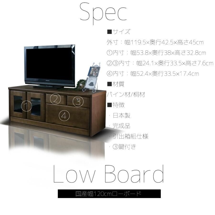 テレビ台 テレビボード TVボード ローボード 120幅 幅120cm TV台 AV収納家具 箱組 カギ付 国産 日本製 北欧 モダン ナチュラル ブラウン パイン材