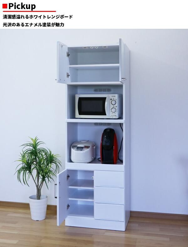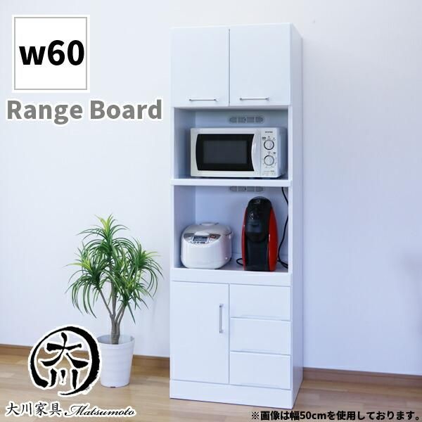レンジ台 レンジボード キッチンボード 60幅 幅60cm オープンボード 日本製 キッチン家電収納 スライドレール コンセント付 北欧 モダン 木製 ホワイト 大川家具
