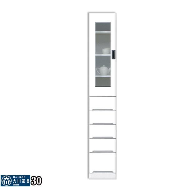 食器棚 ランドリー収納 すきま収納 スリム収納 30幅 幅30cm 隙間収納 食器台 キッチンボード ガラス扉 左右開き対応 日本製 ホワイト エナメル塗装 大川家具
