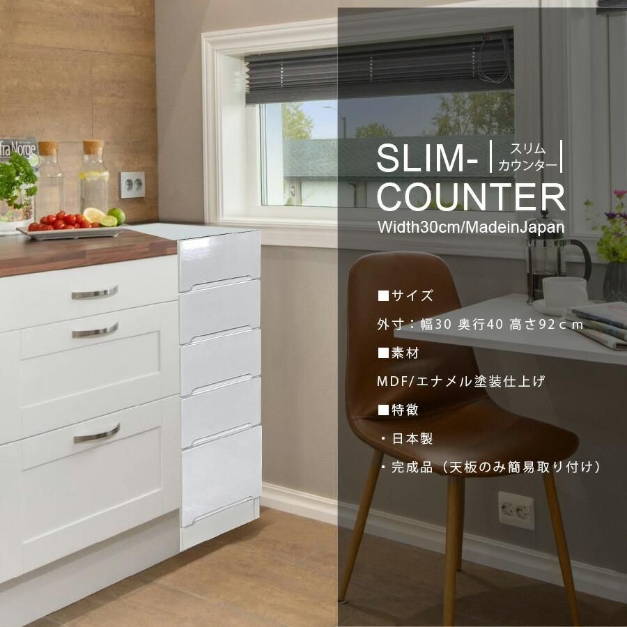 すきま収納 ランドリー収納 30幅 幅30cm 5段 隙間収納 隙間家具 すきま家具 木製 日本製 シンプル モダン ホワイト エナメル塗装 アウトレット価格並 大川家具