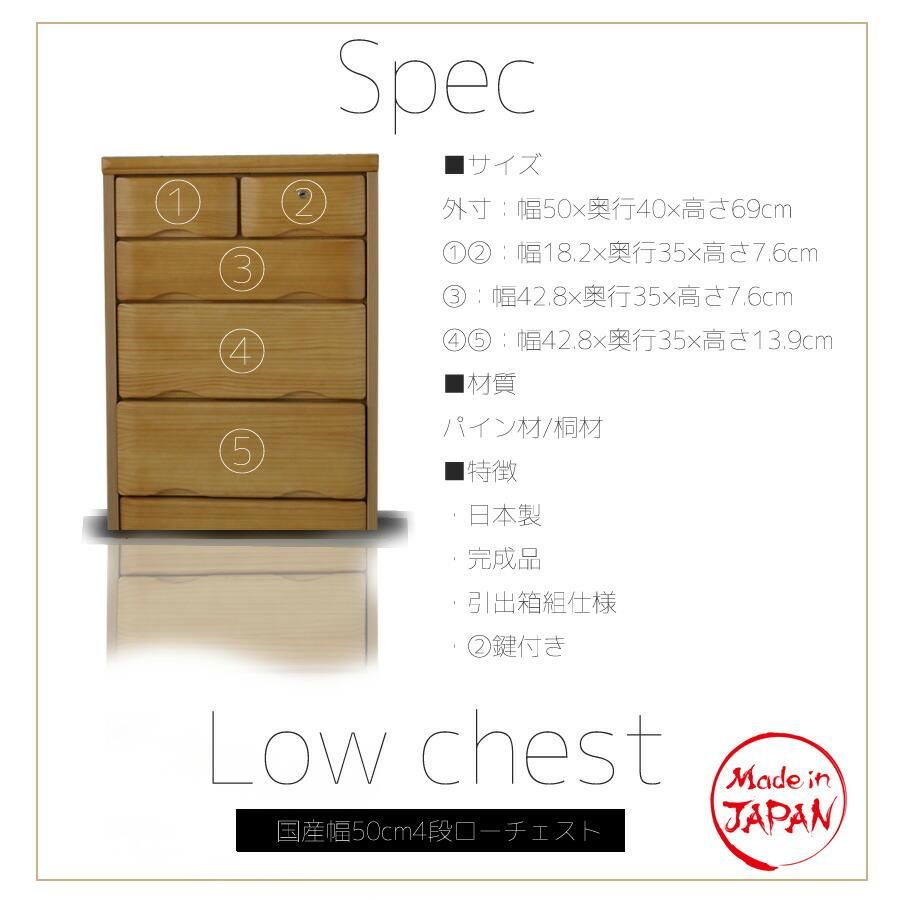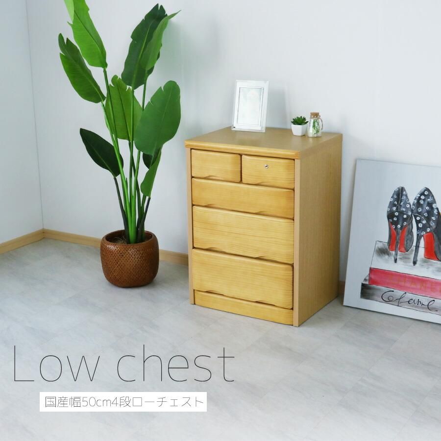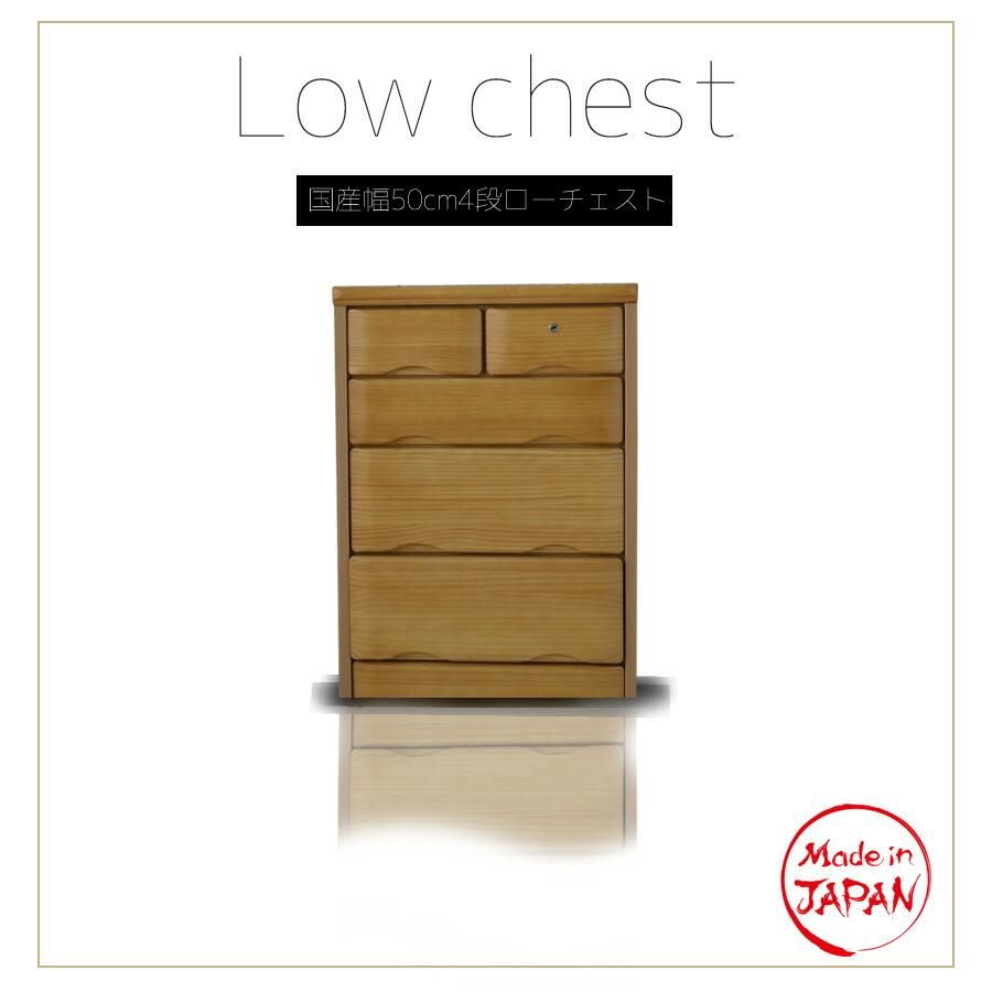 チェスト タンス 箪笥 ローチェスト 50幅 幅50cm 4段 整理たんす 衣類収納 カギ付 完成品 北欧 木製 桐タンス 桐箪笥 日本製 国産 ブラウン ナチュラル 大川家具