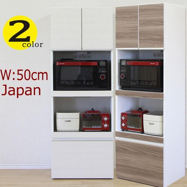 レンジ台 食器棚 レンジボード キッチンボード 幅50cm オープンボード 50幅 キッチン収納 大川家具 日本製 完成品 キッチン家電収納 引出 北欧 モダン 木製 白 ホワイト ブラウン 木目 フルオープンスライドレール アウトレット価格並 楽天 通販