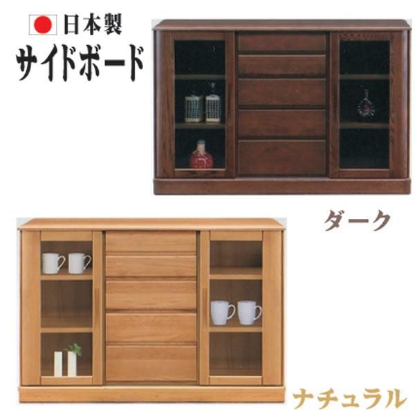 キャビネット チェスト サイドボード リビングボード スライド扉 引出 5段 ガラス 幅115 115幅 引出 可動棚 日本製 モダン ナチュラル ダーク ホワイトオーク材