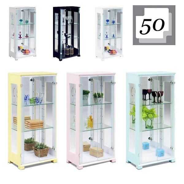 コレクションケース 50 キャビネット ディスプレイラック ホワイト シルバー ブラック ピンク ガラス棚 バックミラー 完成品 korekusyonnke-su 北欧