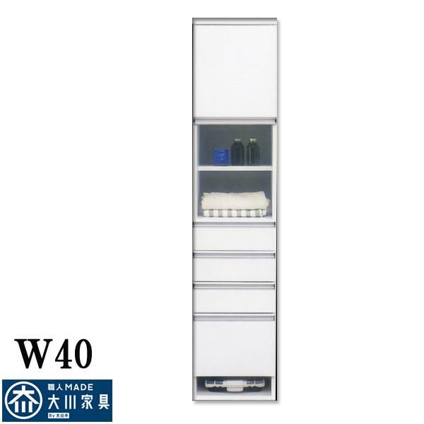 40 ランドリーラック ランドリーチェスト サニタリー収納 大川家具 チェスト 脱衣所 洗面所 すき間収納 家具 国産 隙間収納 完成品 ホワイト 北欧