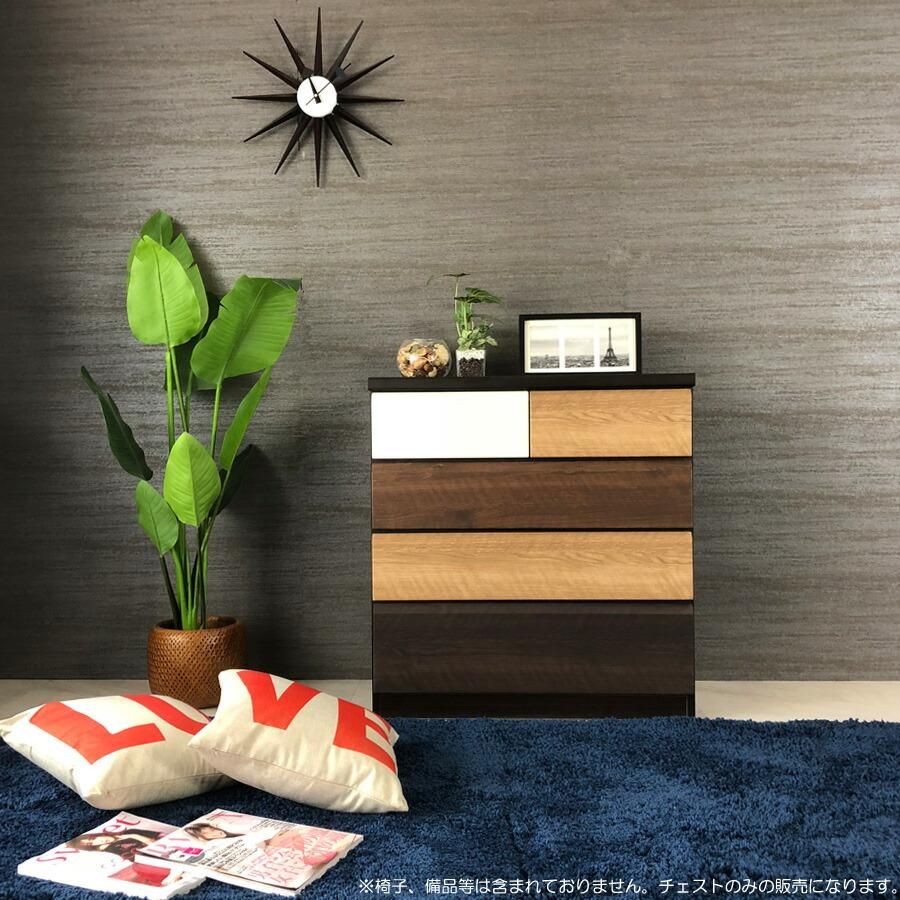 チェスト タンス 箪笥 ローチェスト 80幅 幅80cm 4段 整理たんす 衣類収納 可愛い おしゃれ 完成品 北欧 モダン カラフル 木製 かわいい 高さ85cm 大川家具