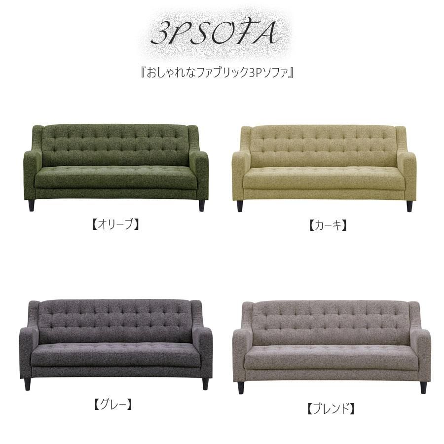 ソファ ソファ― 3Pソファ 3人掛け シンプル ファブリック 脚付き モダン 北欧 グレー カーキ 幅160 160幅 肘置き コンパクト リビングソファ