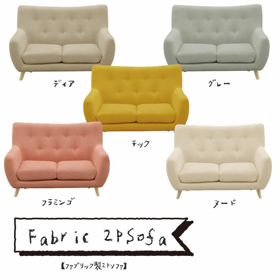 ソファ ソファ― 2Pソファ 二人掛け シンプル ファブリック 脚付き モダン 北欧 ホワイト 幅131 131幅 肘置き コンパクト リビングソファ
