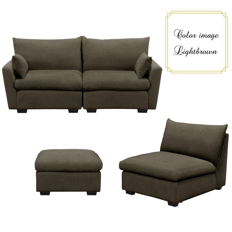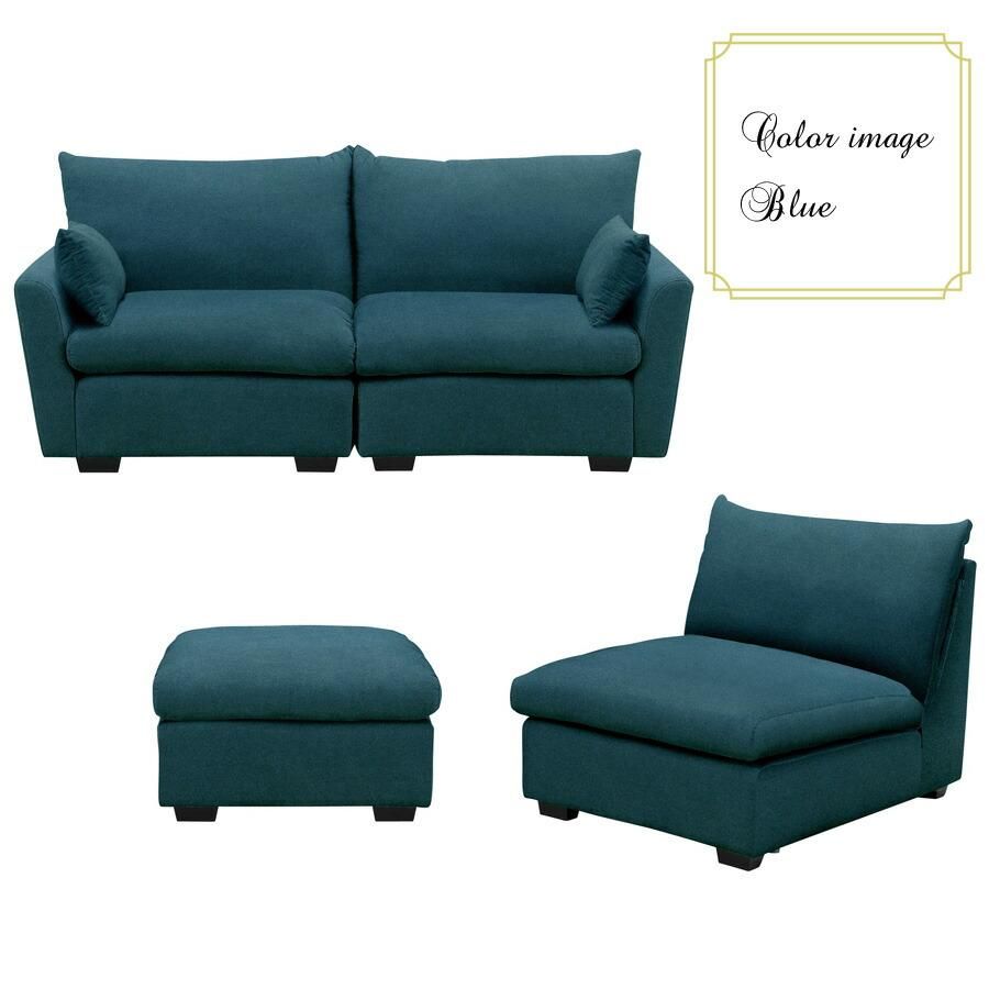 ソファ 3人掛け 脚 分割 スツール付き ブルー ブラウン ファブリック モダン 三人掛け 三人用 アウトレット価格並