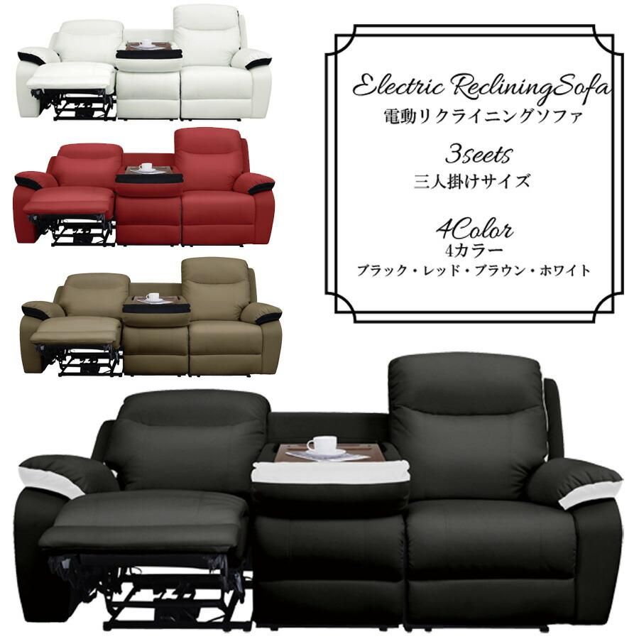 3人用 リクライニングソファ 電動 リクライニングソファー ブラック 黒 ホワイト 白 レッド 赤 ブラウン 茶色 北欧 モダン 三人掛け 三人用