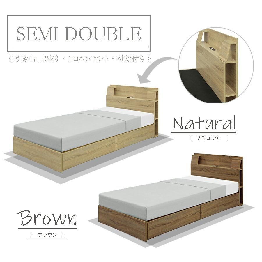 ベッド セミダブルサイズ 引き出し付 おしゃれ ベット 一人暮らし セミダブルベット ベットフレーム ハイタイプ ブラウン ナチュラル 木製 北欧 モダン