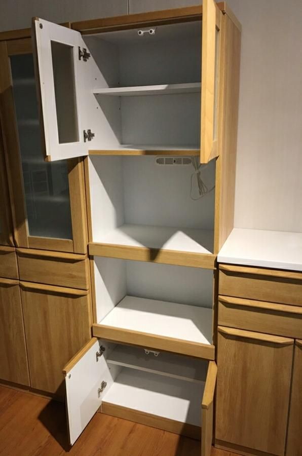 ダイニングボード レンジ台 食器棚 レンジボード キッチンボード 60幅 幅60 高さ180 ガラス扉 コンセント付 スライドカウンター 日本製 北欧 ナチュラル