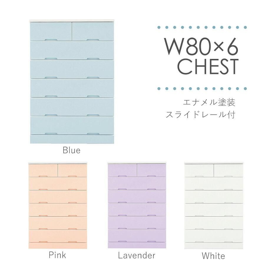 チェスト タンス ハイチェスト 多段チェスト 80幅 幅80 引き出し 衣類収納 収納力 6段 エナメル塗装 木製 完成品 日本製 国産 スライドレール付き