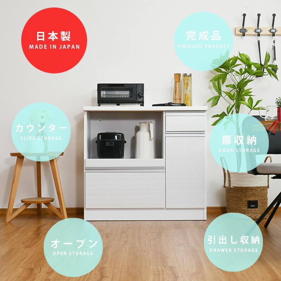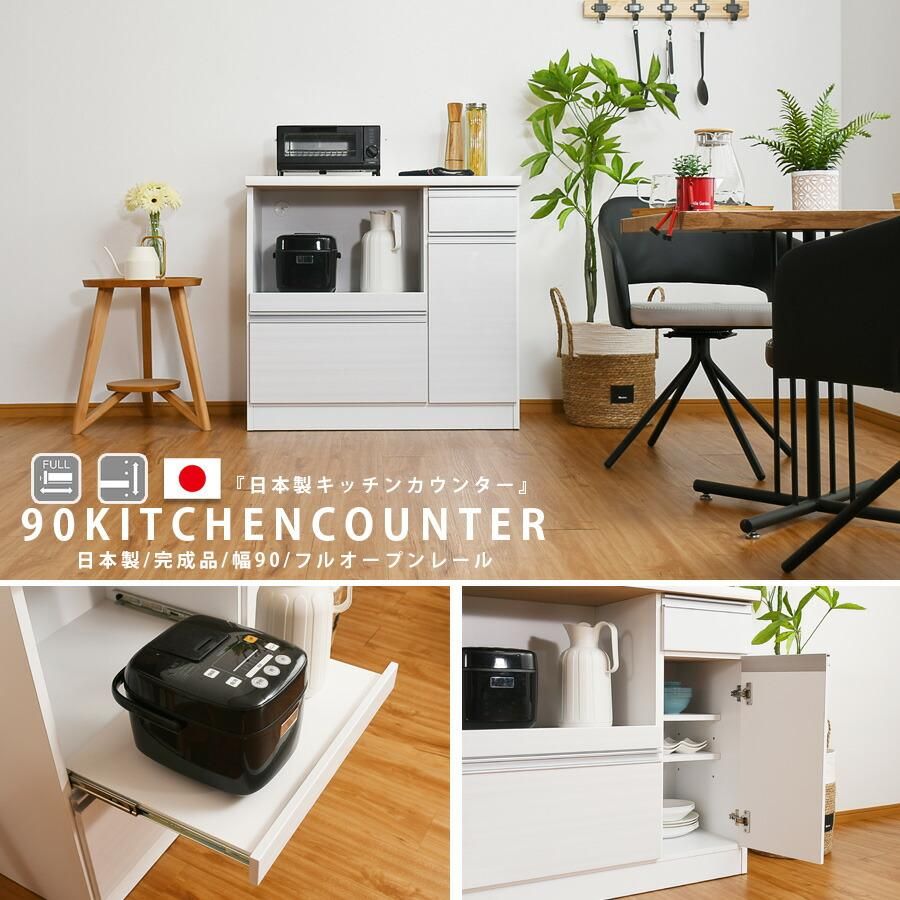 キッチンカウンター 完成品 レンジ台 90幅 オープンボード 幅90cm オープンカウンター モダン 日本製 キッチン収納 キッチンボード 木目調 完成品