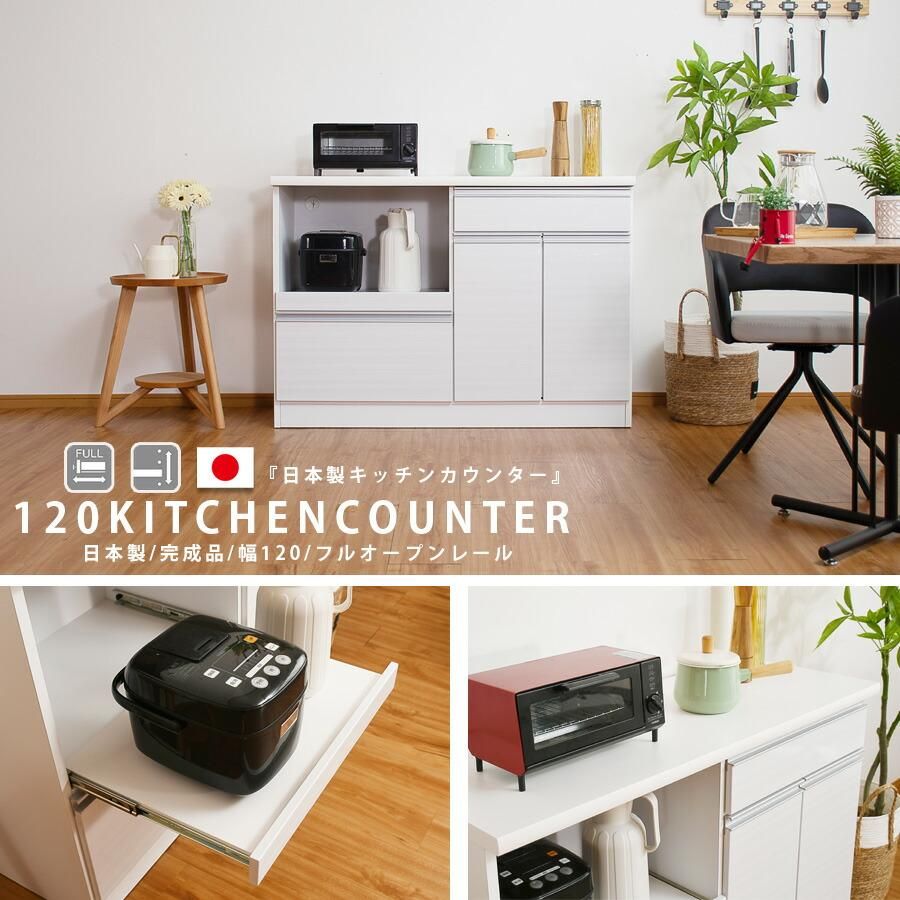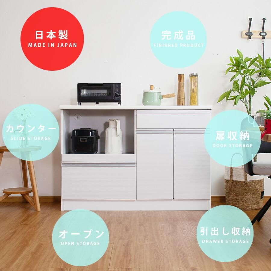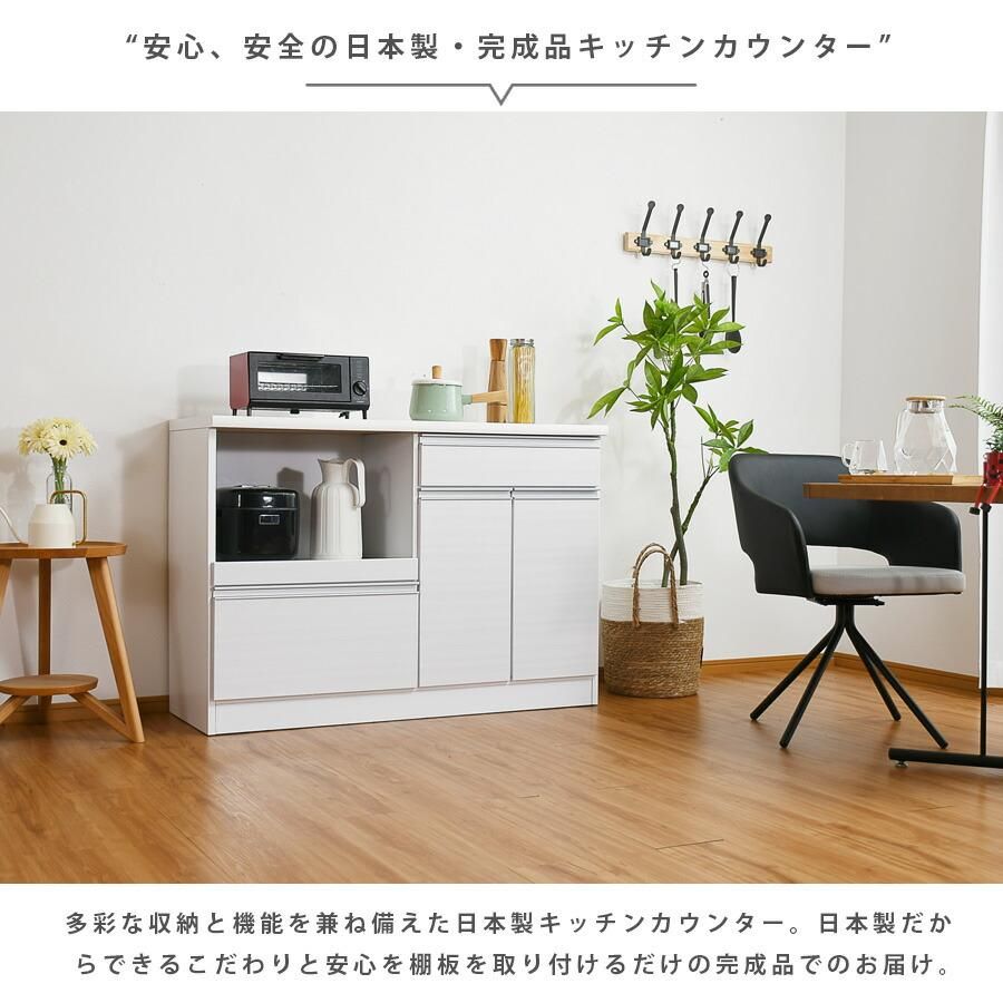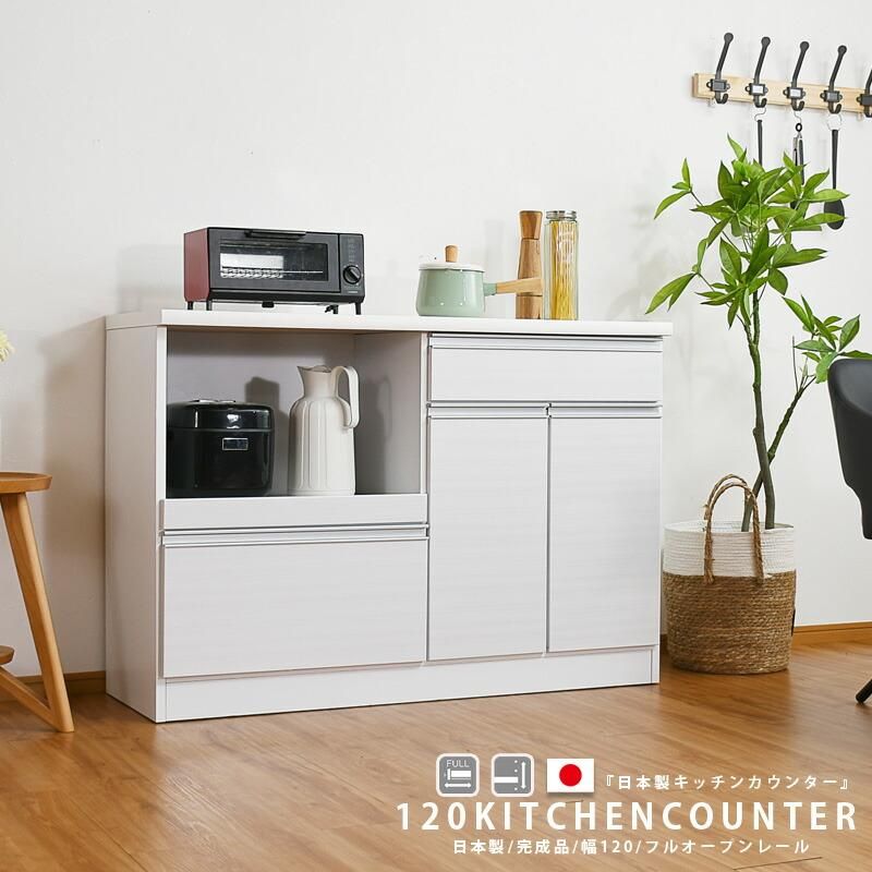 キッチンカウンター 完成品 レンジ台 120幅 オープンボード 幅120cm オープンカウンター モダン 日本製 キッチン収納 キッチンボード モイス 木目調 完成品