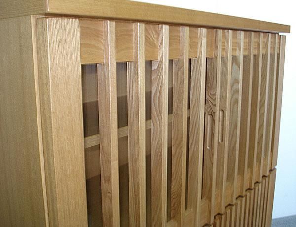 サイドボード 90 キャビネット 90幅 和風 食器棚 カップボード 格子 国産 大川家具 高級 FAX台 日本製 タモ無垢材 完成品 北欧 モダン