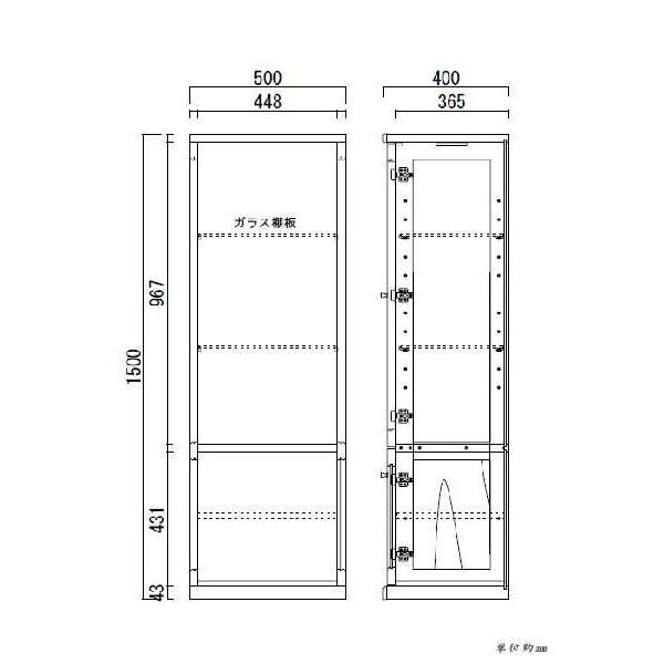 コレクションケース 50幅 高さ150 キャビネット ガラス 北欧 無垢 コレクションボード 高級 和風コレクションケース 大川家具 照明 ライト付き