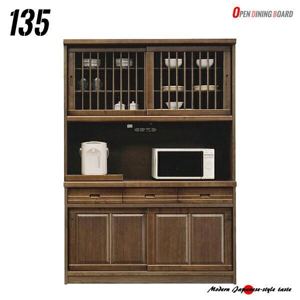 オープンダイニングボード 食器棚 135 和風 縦格子 国産 格子 モダン 無垢材 キッシュボード 高級 キャビネット 格子タイプ タモ材 カマホゾ組