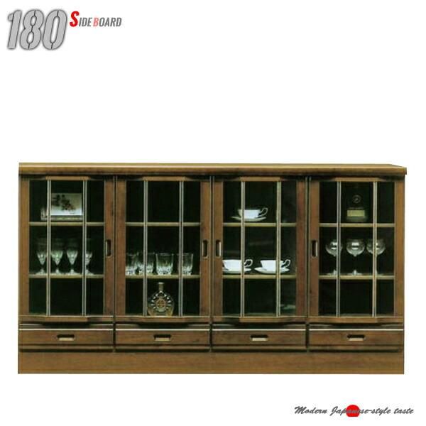 サイドボード 180 キャビネット ガラス扉 電話台 北欧 大川家具 fax台 無垢 開き戸 FAX台 出窓 食器棚 カップボード 日本製 完成品 グラス収納