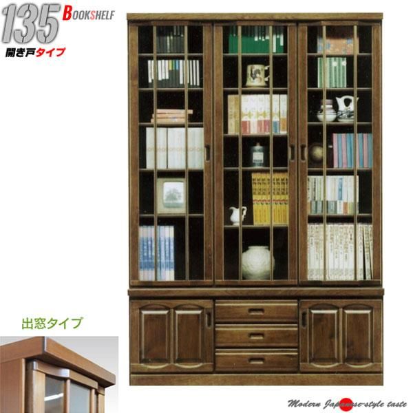 本棚 書庫 135 書棚 巾135 無垢 日本製 キャビネット 扉付き本棚 開き扉 扉付き 高級 開き戸 和風家具 シェルフ 大川家具 CD収納 ガラス扉 完成品 本収納 北欧