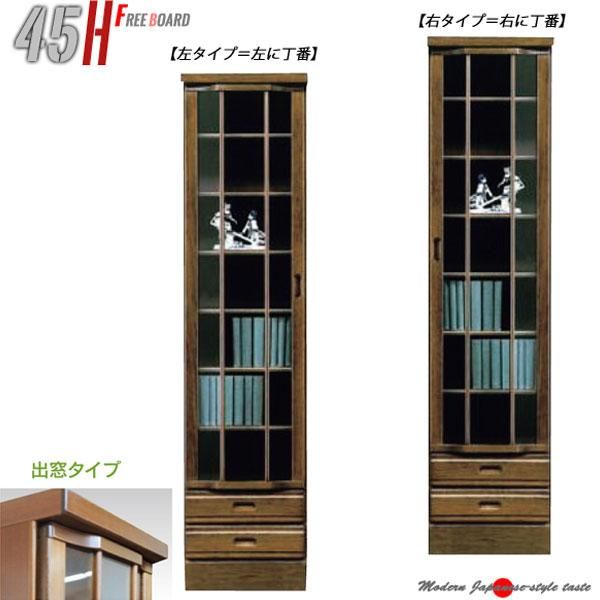 フリーボード 本棚 45 書棚 サイドボード 無垢 キャビネット 開き扉 和風 食器棚 大川家具 カップボード 日本製 スリムタイプ ガラス扉 隙間収納 すき間収納